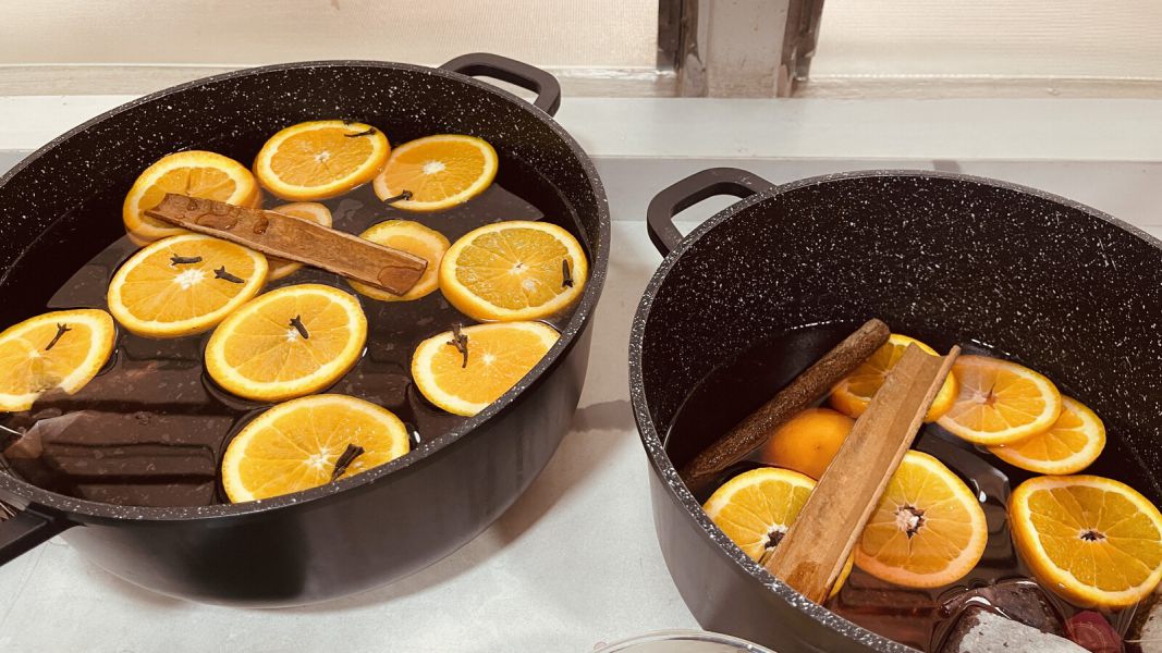 Die Orangen gründlich abwaschen, in Scheiben schneiden und zum warmen Tee geben. Nun nach Geschmack mit Nelken und Zimtstangen würzen – so entsteht der weihnachtlich duftende Punsch.