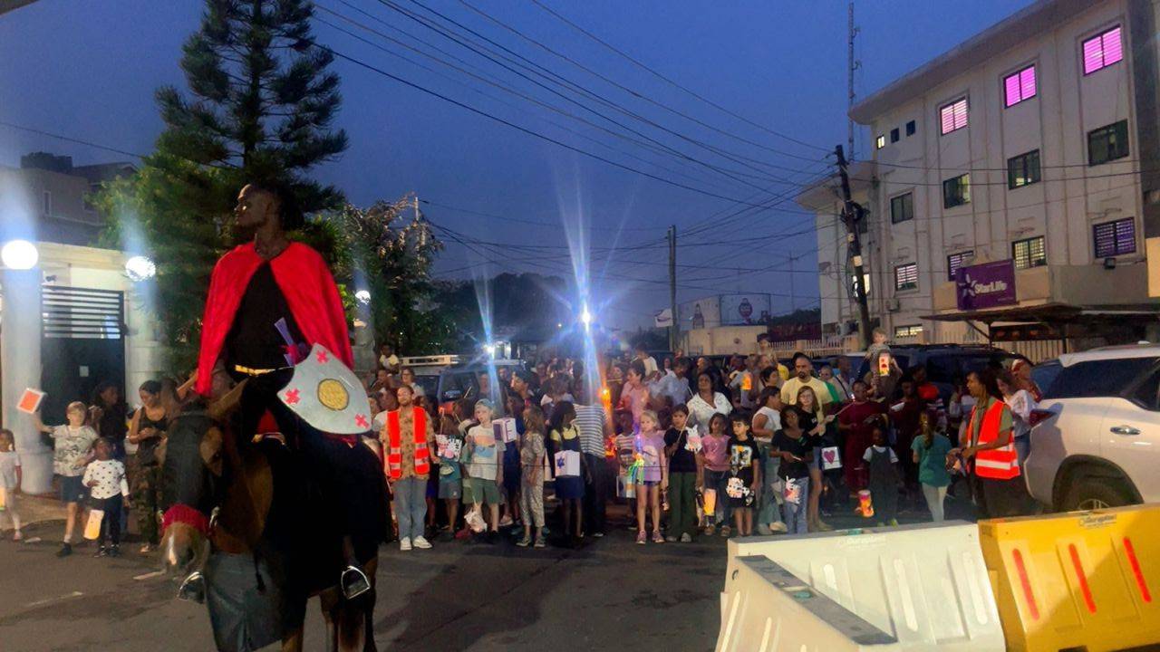 A very special surprise awaited the children at the GISA entrance gate: St. Martin on a brown horse, leading the colourful lantern procession of excited children accompanied by traditional lantern songs.