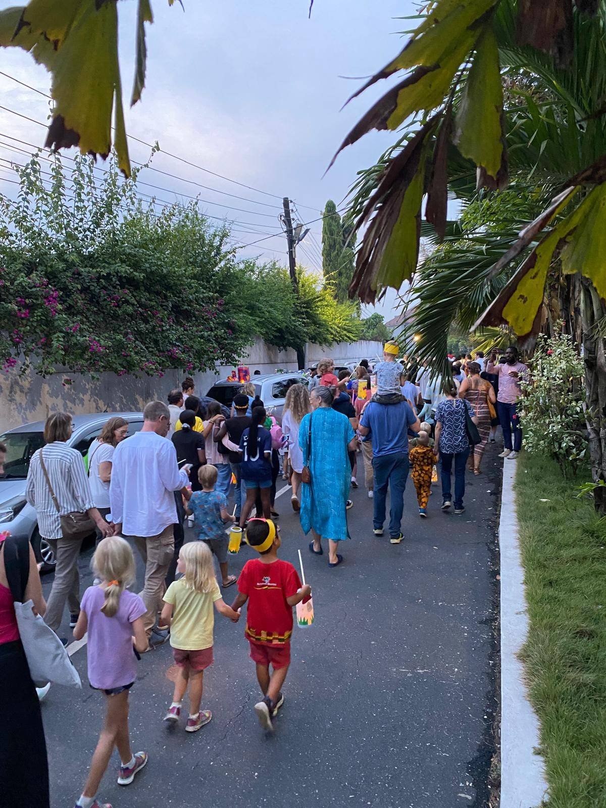 Before the lantern walk began, all guests joined together to sing the well-known lantern songs that the children had practiced for many weeks. Finally, the moment arrived: the children proudly lit up their carefully crafted lanterns, filling the evening with colour and glow.