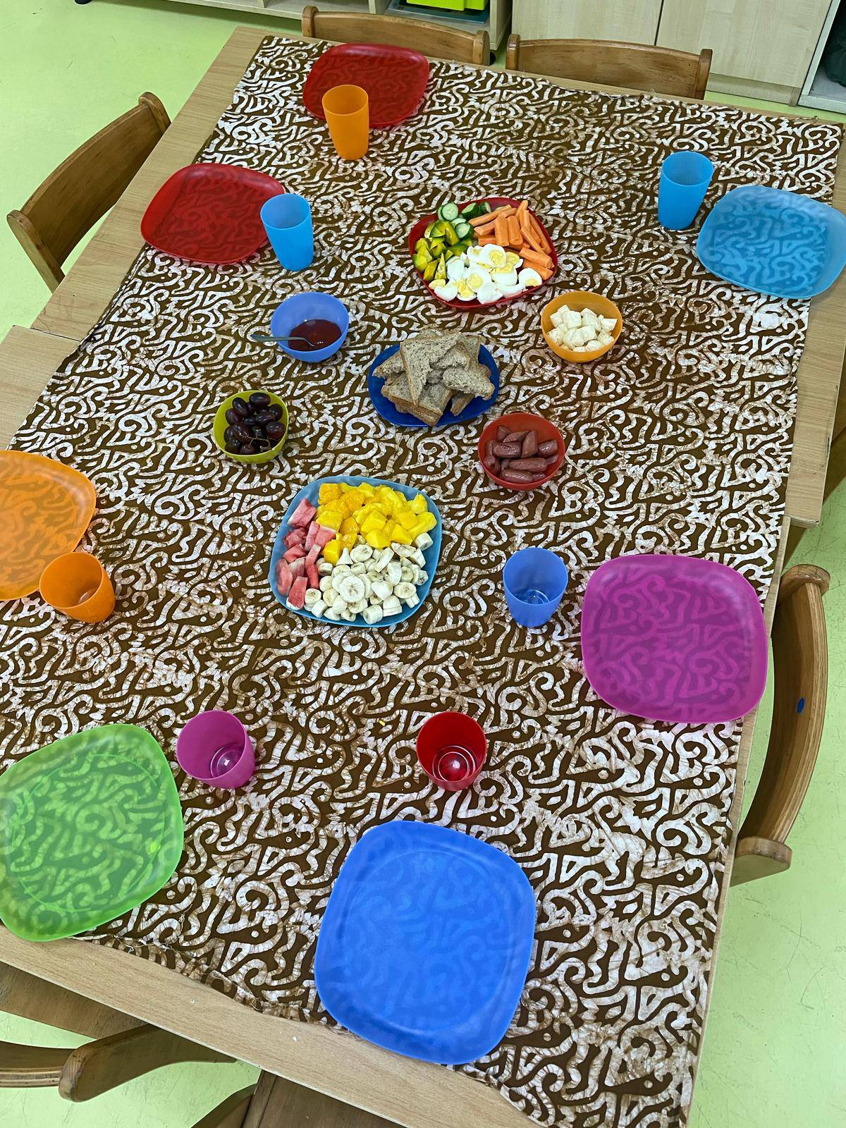 For their healthy breakfast, they followed the food pyramid – focusing on fruits and vegetables and enjoying just a small portion of bread. A big thank-you to all parents who contributed healthy items!