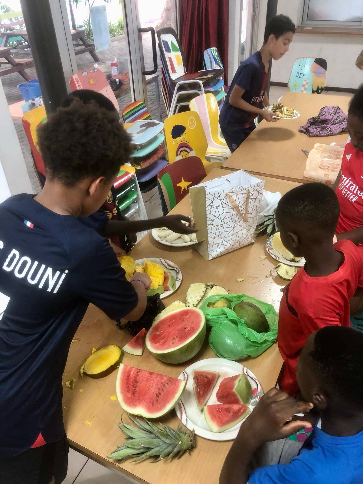 Their healthy breakfast followed the pyramid’s guidelines: just half a slice of bread, and plenty of fruits and vegetables. English lessons were also integrated, with vocabulary related to food and nutrition being practiced and reinforced.