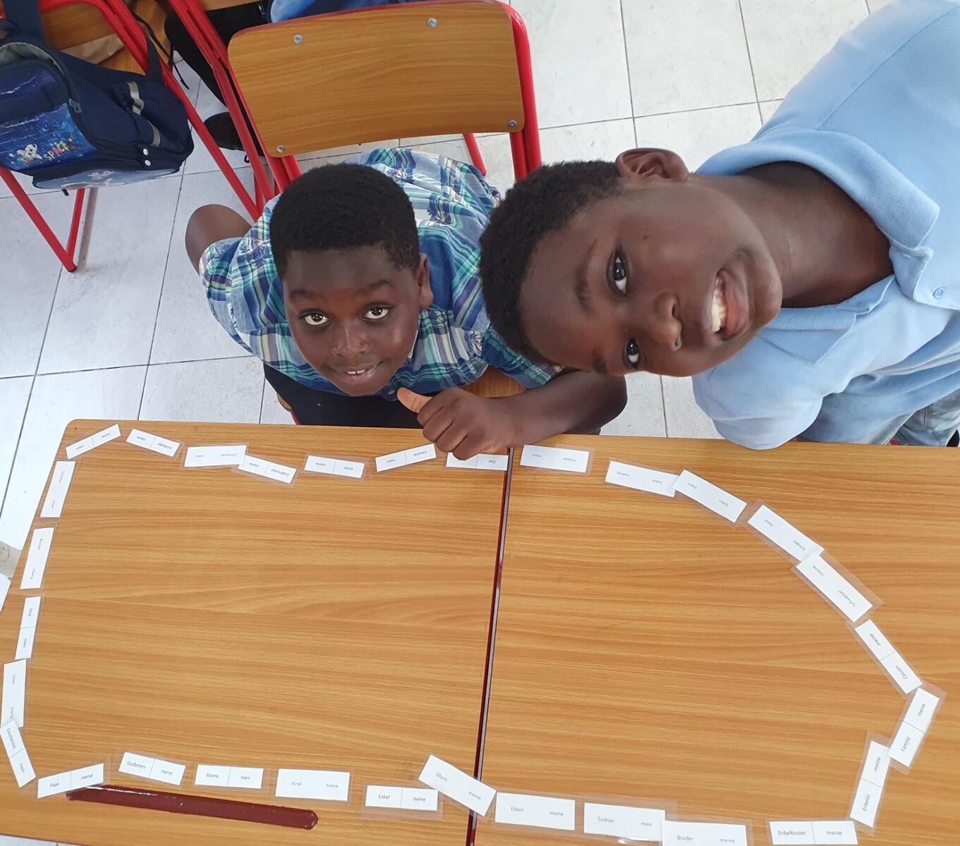 To consolidate their vocabulary, the learners created family trees and wrote creative nonsense stories using the sentence patterns they had learned. In various rotating groups, they strengthened their conjugation and vocabulary skills through language games.