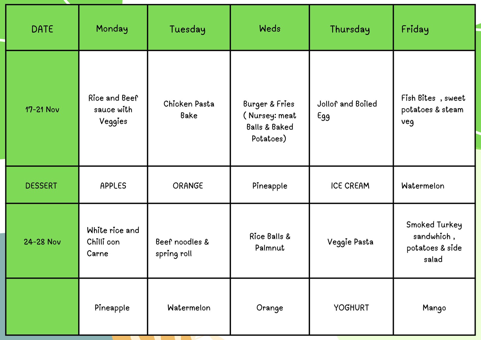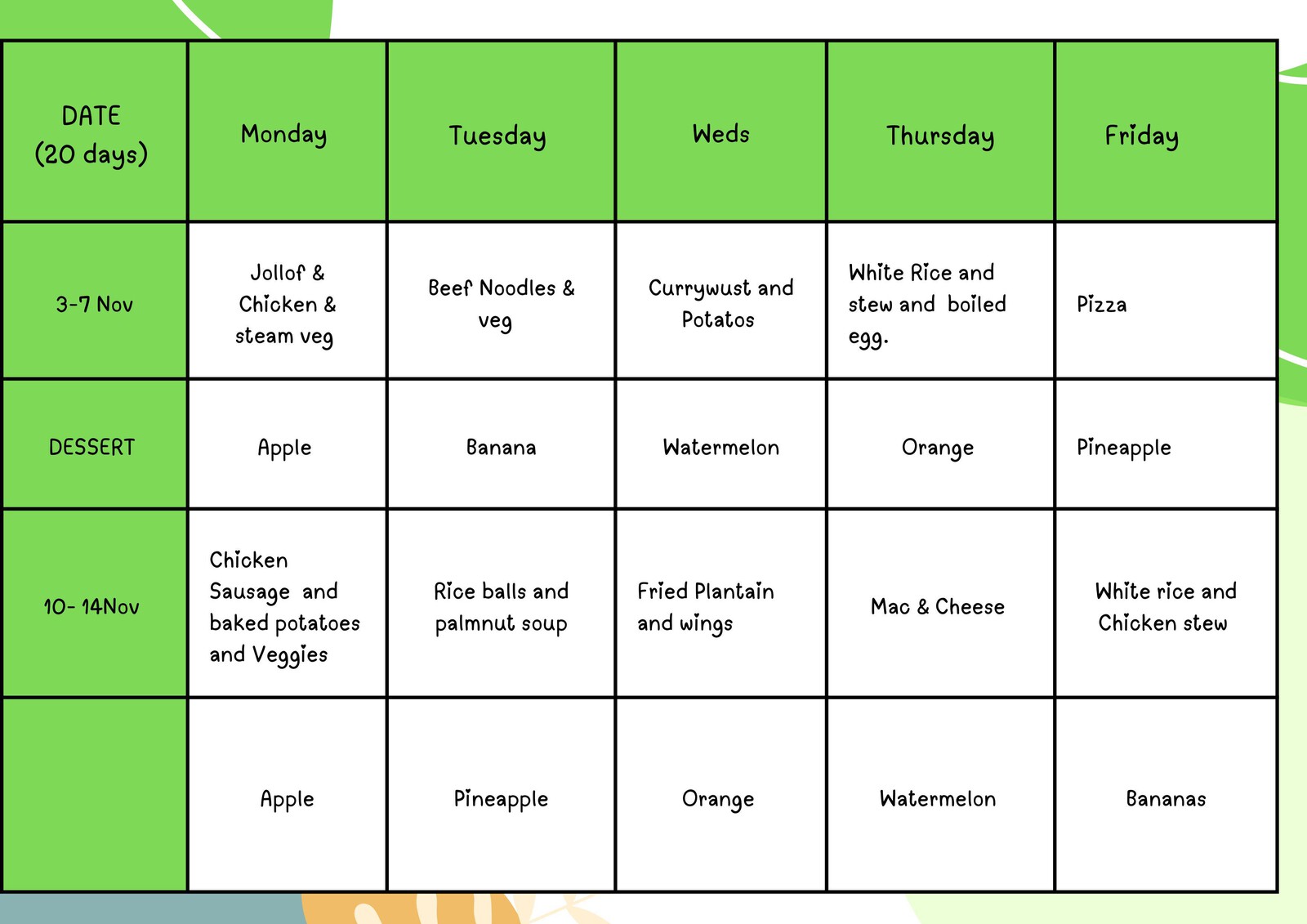 Parents who pay for the full month ahead for their child's school meals will receive a 30 GHC Voucher from North Ridge Café, which can be used during a visit to the café. Please note, only one voucher per family will be issued.