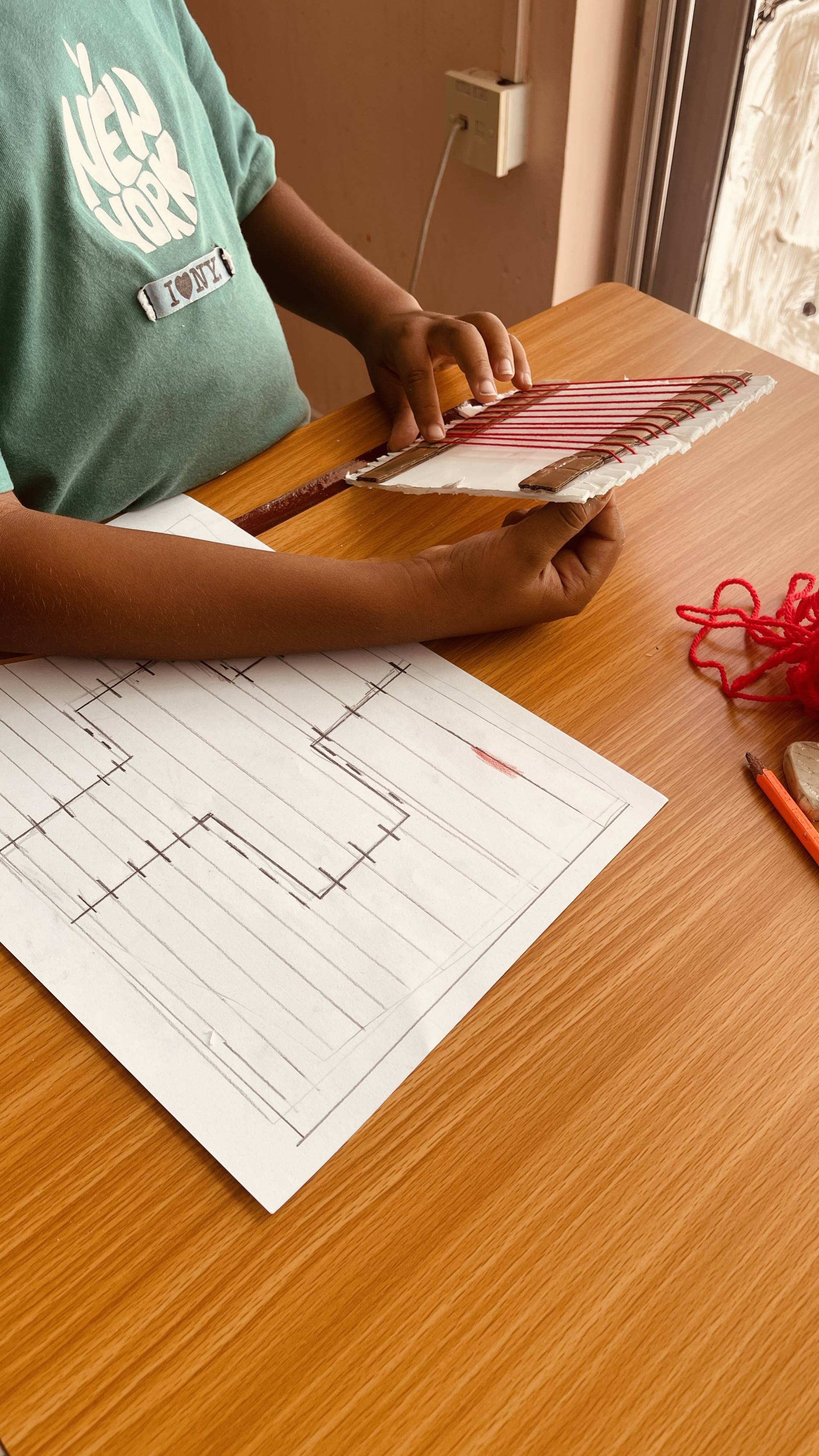 Some children already had a very clear vision of the pattern they wanted to weave. Their eyes sparkled as they put their ideas onto paper and created their first sketches – sometimes delicate, sometimes colorful, sometimes wild and bold.