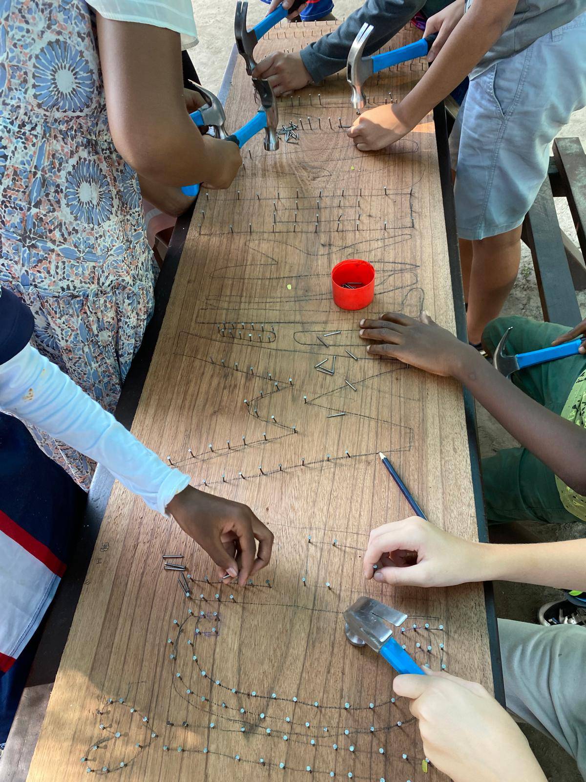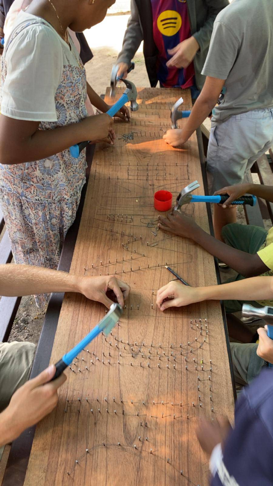 In our Woodworking Project, students worked with great enthusiasm, skill, and team spirit to create a special collaborative artwork: a large, colourful string art piece.