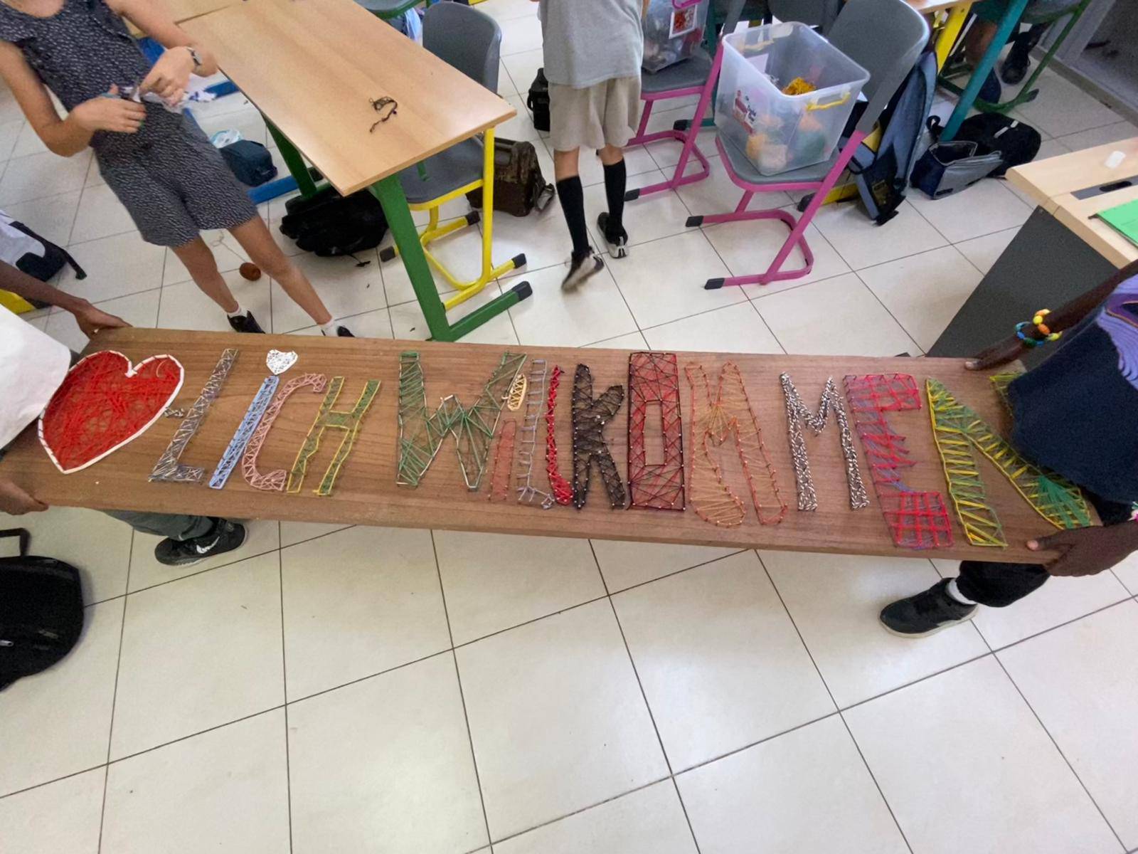 Step by step, something truly impressive emerged from a simple wooden board. First, the nails were placed carefully and precisely — a great exercise in fine motor skills, concentration, and craftsmanship. Then came the creative part: using colourful yarn, the students connected the individual elements and brought the artwork to life with vibrant patterns that show what is possible when ideas grow together.