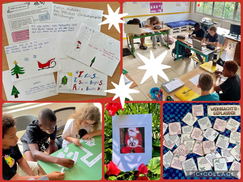 This week, a pre-Christmas German potpourri was on the program for the seventh graders: Christmas conversation prompts and punctuation exercises alternated, and after their ballad unit, the students got to know another famous form of poetry: the Japanese haiku, a form of poetry usually consisting of only three verses. They wrote winter haiku themselves and illustrated them accordingly. In the middle of the week, the class received a devastating message by letter: Christmas was in danger because a villain had kidnapped Santa Claus. Only with their active help could he be freed and Christmas be saved! - This varied “escape game”, in the course of which the pupils cooperatively “cracked” various logic puzzles, quickly created a Christmas atmosphere.