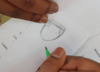 The DaF class at secondary level (the motivated pupils in years 5, 6 and 7) got to grips with the German tradition of school cones before the vacations. They each made one as a welcome gift for the new students starting in May. The results were varied and colorful.This week, our topic was the vocabulary of the circle of friends, school, lessons, but also nutrition and the food pyramid.With the topic of school and lessons, the learners have dealt with the polite form, negation and possessive articles in grammar.This Friday, the DaF group once again wrote a learning objectives test on this week's topics.What the learners also prepared this week were profiles for future collaboration with students from the University of Potsdam. Next week, the students will receive letters of introduction from Potsdam and prepare for their future interview acquaintances.