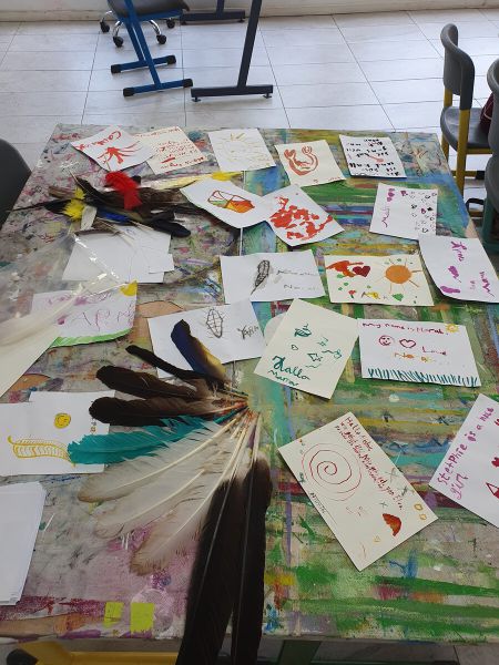 Ein schönes Beispiel der neuen Projektzeit: Nach der anspruchsvollen Vorbereitung der Pflanzenteile und dem Weben des Rohmaterials freuten sich die Schülerinnen und Schüler, ihre gut gepressten Papyri aufzuschlagen. Im nächsten Schritt präparierten die Kinder ihre Federn von Tauchervögeln und lernten sofort, damit zu schreiben und zu zeichnen.