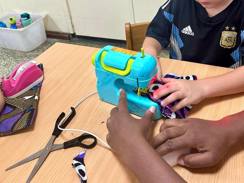 In dieser Woche haben die Kinder sich im Nähen versucht, und es war interessant zu beobachten, wie vielfältig die zu berücksichtigenden Details sind. Am Ende haben sie kleine Handtaschen, Geldbörsen oder ähnliche Gegenstände geschaffen.