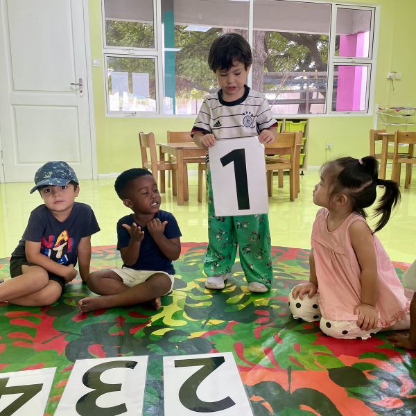 Die Kinder im Kindergarten lernen momentan die Zahlen von 1 bis 10 näher kennen. Es werden im Morgenkreis die Kinder gezählt, wir singen Zahlenlieder und in der Lernzeit lernen wir die Zahlenbilder kennen. Auch in unserem neuen "Kaufmannsladen" lässt sich das Zählen super erproben. Wir zählen Ananas, Eier, Tomaten und natürlich unser Geld.