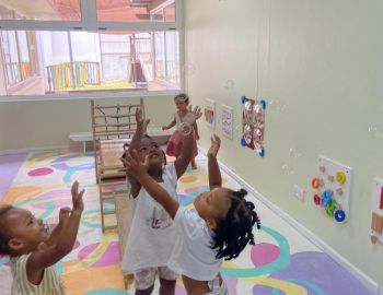 Vergangene Woche haben wir in der Kinderkrippe Seifenblasen platzen lassen und waren begeistert davon, wie die Blasen in der Luft fliegen. Wir haben auch Luftballons mit Salz und Mehl befüllt. Dadurch konnten die Kinder ihre Feinmotorik trainieren u…