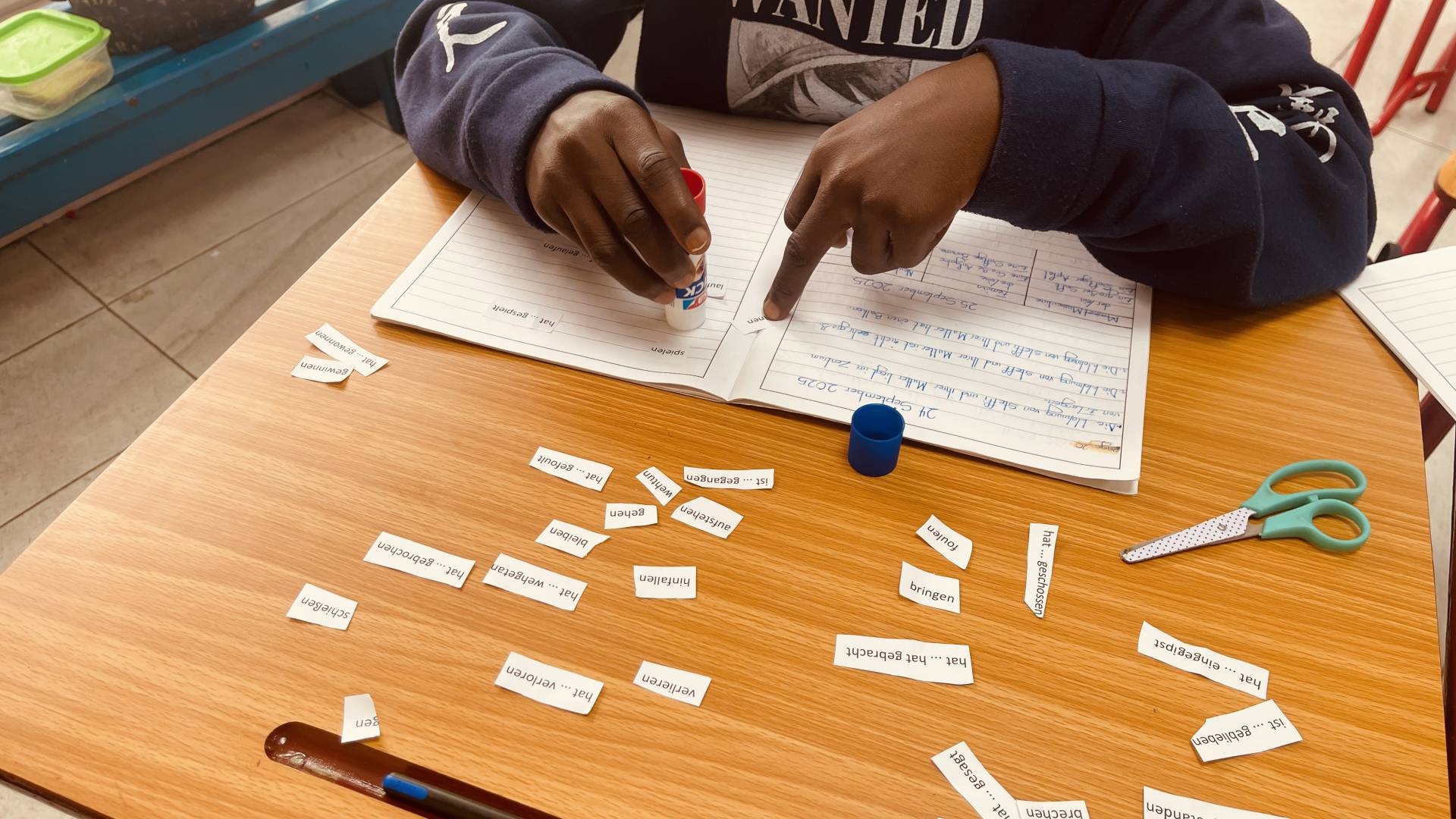 Die DaF-Schülerinnen und Schüler der Klasse 7/8 zeigten in dieser Woche, dass sie die deutsche Grammatik bereits sehr gut beherrschen. Die Aufgabe „Das perfekte Paar" fiel ihnen entsprechend leicht: Sie sollten von einem ungebeugten Verb das passende Pendant im Perfekt finden und anschließend einen passenden Satz dazu formulieren und aufschreiben.