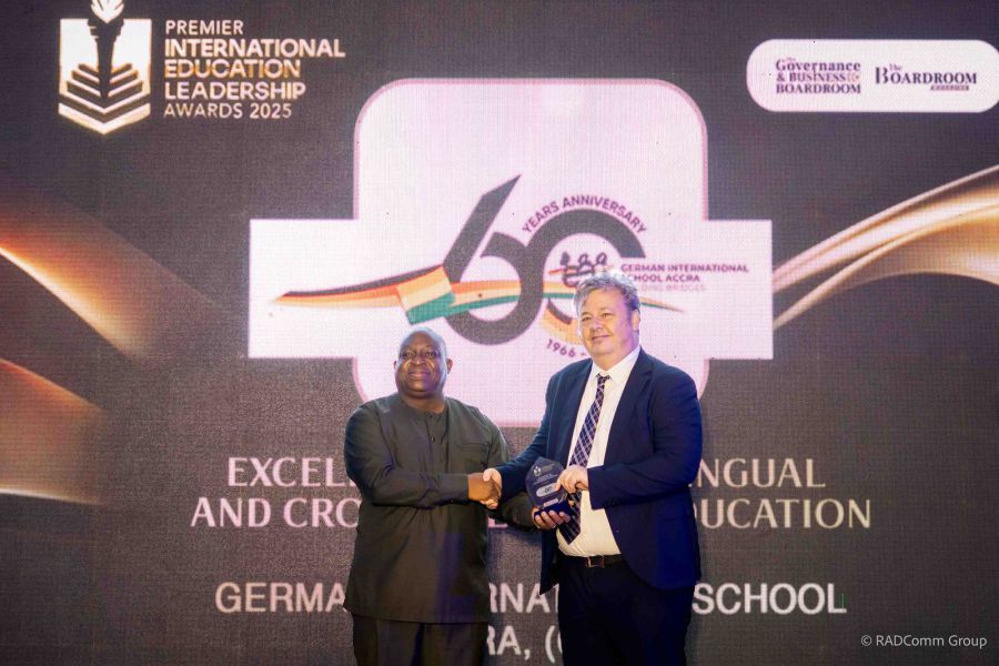 Parallel zur Veranstaltung der British High Commission durfte Schulleiter Rainer Kropp-Kurta am Abend im Accra Marriott Hotel den renommierten Premier International Education Leadership Award entgegennehmen. In der Kategorie "Excellence in Multilingual and Cross-Cultural Education" wurde die GISA als Gewinnerin geehrt – ein starkes Signal für unser schulisches Profil, das Internationalität, Mehrsprachigkeit und interkulturellen Austausch tagtäglich lebt.