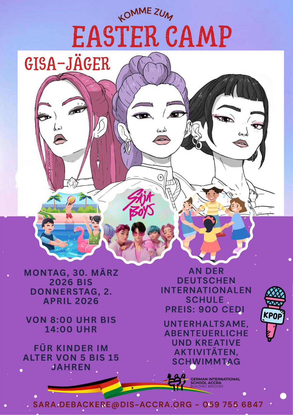 Die Deutsche Internationale Schule Accra lädt Kinder und Jugendliche zu einem abwechslungsreichen Easter Camp ein. Vom 30. März bis zum 2. April 2026 erwartet die Teilnehmenden täglich von 8:00 bis 14:00 Uhr ein buntes Programm voller Bewegung, Kreativität und gemeinsamer Erlebnisse.