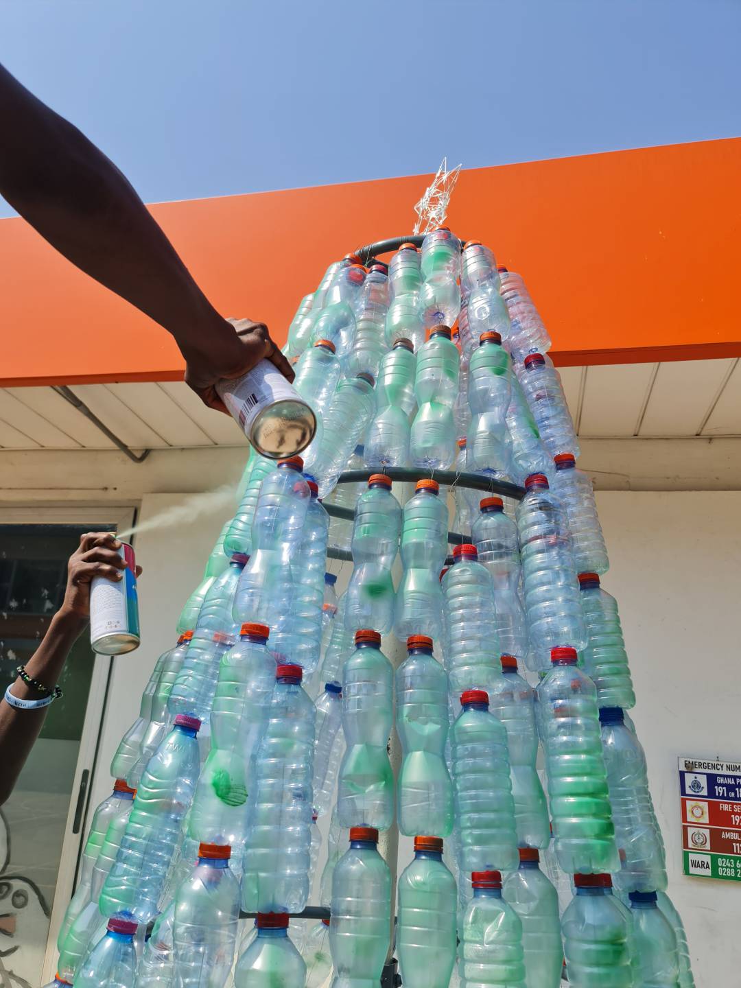 In den vergangenen Wochen verwandelten unsere Schülerinnen und Schüler unzählige Plastikflaschen in einen spektakulären Weihnachtsbaum. Vom Sammeln und Sortieren über Bohren, Verdrahten und Zusammensetzen bis hin zum finalen Besprühen in leuchtenden Farben – jede Phase hat unglaublich viel Freude gemacht und den Zusammenhalt gestärkt.