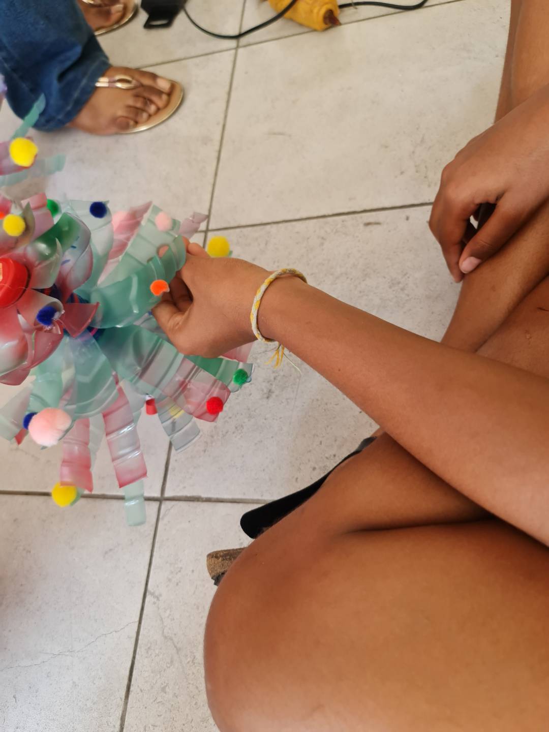 Parallel dazu entstand ein zweites Highlight: Ein Kreativteam baute kleine Plastik-Weihnachtsbäume sowie weihnachtliche Dekorationen aus Bambusstäben. Auch hier standen Nachhaltigkeit, Geschick und Fantasie im Mittelpunkt.