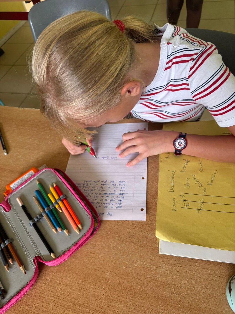 Diese Woche haben wir im Deutschunterricht die wörtliche Rede wiederholt und in verschiedenen Texten angewendet. Außerdem haben wir unsere zweiten Briefe an unsere Brieffreunde von der Willy-Brandt-Schule in Norderstedt geschrieben und sind schon sehr gespannt auf die Antworten. Die Klasse hatte außerdem die Idee, zusätzlich Interviews oder Videobotschaften auszutauschen, um sich noch besser kennenzulernen.