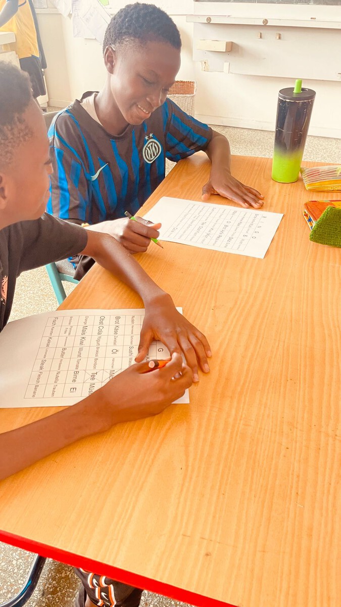 In dieser Woche haben wir uns im Deutschclub intensiv im freien Sprechen und aktiven Zuhören geübt – und das auf spielerische Weise. Bei einem Lebensmittel-Bingo wurden die gesuchten Begriffe nicht direkt genannt, sondern von den Schülerinnen und Schülern umschrieben. So lautete eine Beschreibung zum Beispiel: „klein, weiß und man muss es kochen“ – die richtige Antwort war natürlich Reis.