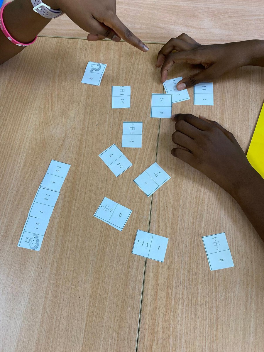 In Mathematik gelang der Wiedereinstieg nach den Ferien mit einem Domino-Spiel zur Addition und Subtraktion von Brüchen. Dieses sorgte für einen motivierenden Einstieg und half, bekannte Inhalte spielerisch zu wiederholen und zu festigen. Im Anschluss arbeiteten die Schülerinnen und Schüler intensiv an allen vier Grundrechenarten mit Brüchen.