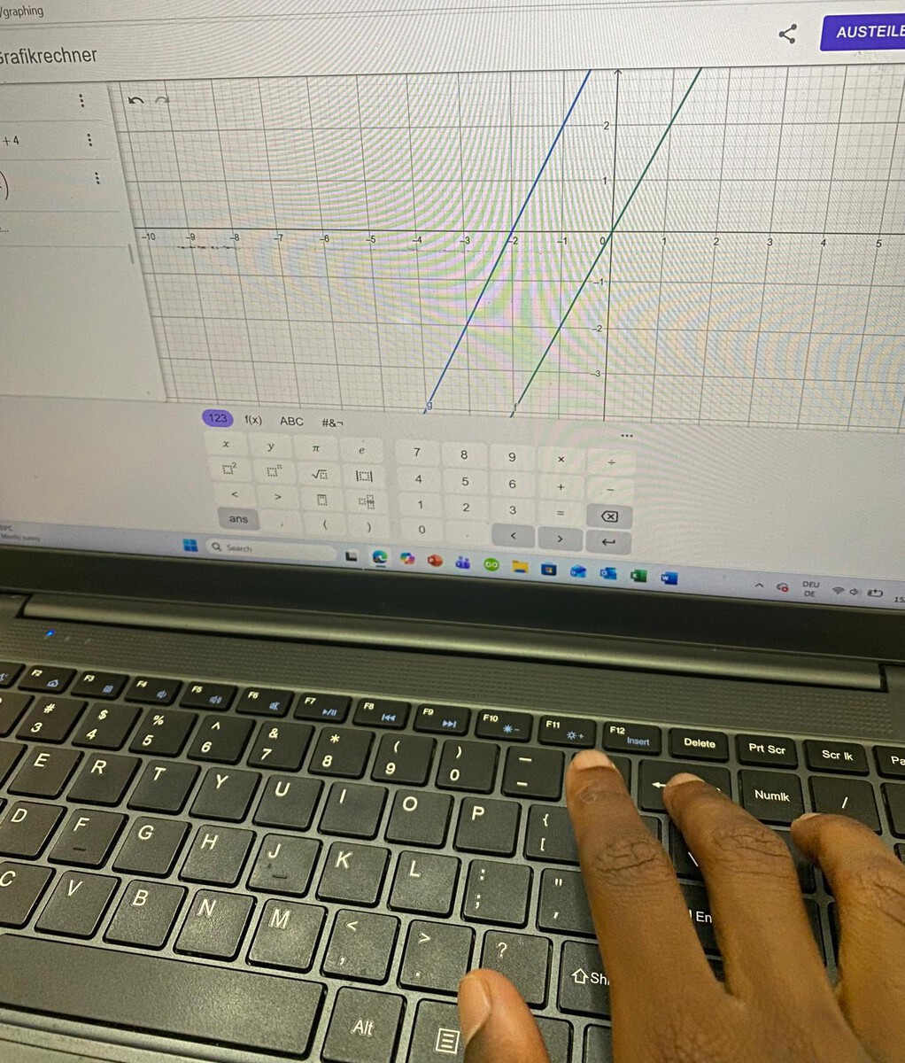 In der Klasse 8 arbeiteten die Schülerinnen und Schüler mit dem Programm GeoGebra. Sie untersuchten, wann Geraden parallel, senkrecht oder in einer anderen Lage zueinander stehen, und vertieften dies sowohl zeichnerisch als auch rechnerisch. Zudem wurde erarbeitet, wie sich aus zwei gegebenen Punkten eine Funktionsgleichung bestimmen lässt.