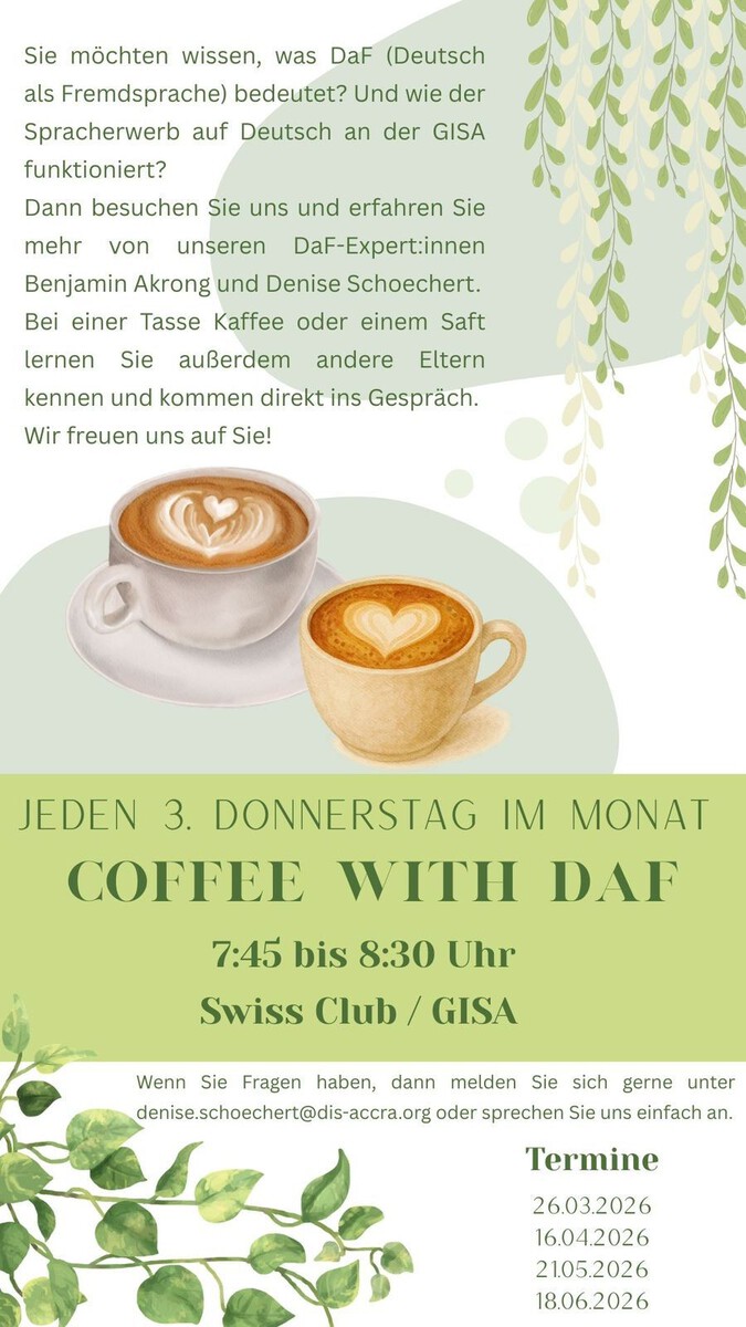 Der Ghana-Tag machte sichtbar, wie sich die Deutsche Internationale Schule Accra in den vergangenen Jahren entwickelt hat: wachsend, offen, international vernetzt und zugleich fest in Ghana verwurzelt. Mit inzwischen rund 140 Schülerinnen und Schülern positioniert sich die Schule zunehmend als bedeutender kultureller Mittler in der Region.