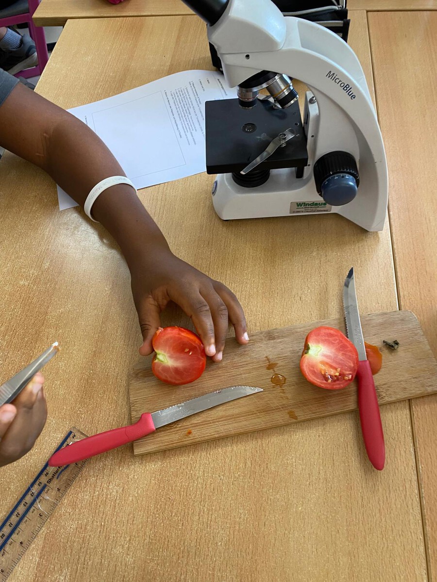 In Biologie der Klasse 7 führten wir einen kleinen Mikroskopietest durch. Die Schülerinnen und Schüler mikroskopierten eine Tomate, betrachteten deren Zellstrukturen und fertigten sorgfältige biologische Zeichnungen an.