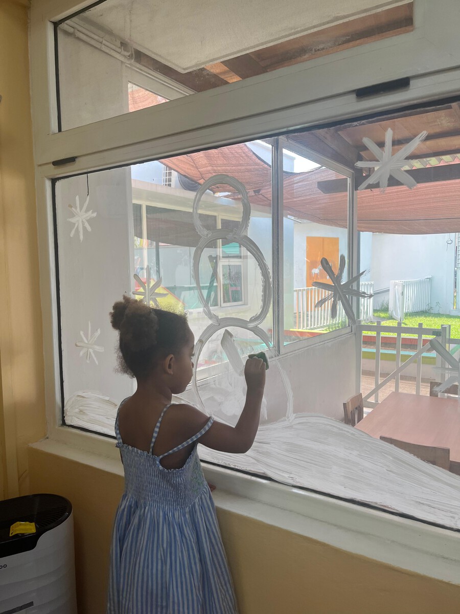 Im Laufe der Woche entstanden winterliche Fensterbilder mit Schneemännern und Weihnachtsbäumen aus Fingerfarbe sowie bunte Kerzen aus Transparentpapier. Dabei sammelten die Kinder wertvolle Sinneserfahrungen, schulten ihre Feinmotorik und lebten ihre Kreativität aus.