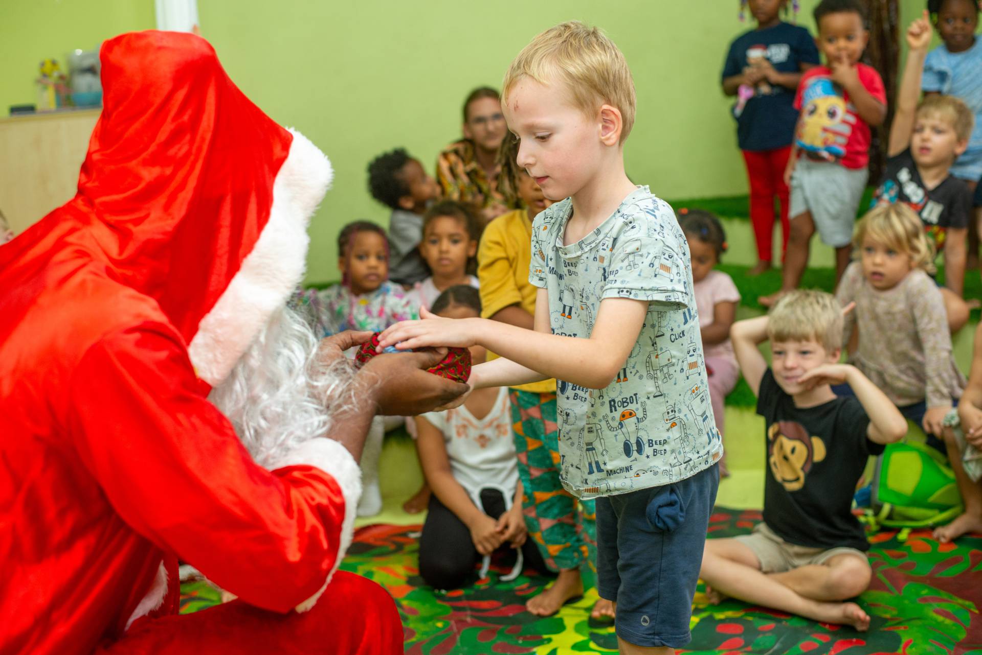 In jeder Gruppe und Klasse war die Freude riesig! Die Kinder hatten die Gelegenheit, dem Nikolaus zu erzählen, was sie bereits über ihn und diesen besonderen Feiertag wissen. Die Kinder wurden zum Nachdenken gebracht, sie sollten überlegen, in welcher Situation sie sich in diesem Jahr hilfsbereits ihren Freunden gegenüber verhalten haben. Es gab dafür natürlich viele gute Beispiele und somit auch viel zu Erzählen! Neugierig stellten sie ihm auch Fragen, die der Nikolaus mit viel Geduld beantwortete.