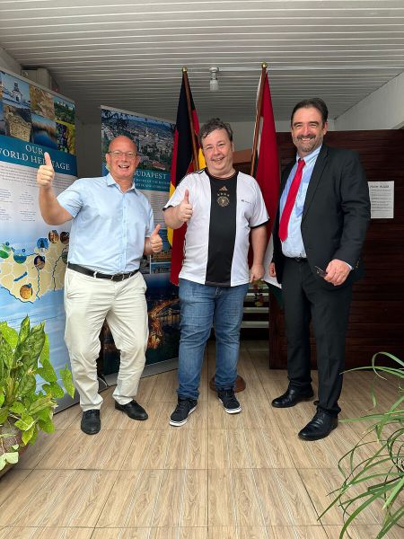 Zum ersten Mal seit 1988 findet wieder eine Fußballeuropameisterschaft in Deutschland statt. Anlass genug den Swiss Club der Deutschen Internationalen Schule für das Public Viewing der Spiele der deutschen Mannschaft zu öffnen. Beim zweiten Vorrundenspiel gegen Ungarn strömten die Gäste herbei und ließen es sich dank Eva und ihrem Team vom North Ridge Café bei Langos und Kässpätzle gut gehen. Die ungarische Botschaft ergänzte das Angebot noch um leckeren Wein vom Balaton. Beide Botschafter, Tamas Feher und Daniel Krull, gaben sich die Ehre und konnten zusammen mit beiden Fan-Lagern ein spannendes Spiel beobachten, welches bekanntermaßen 2 zu 0 für Deutschland ausging und das Ticket zum Achtelfinale im eigenen Land bedeutet.