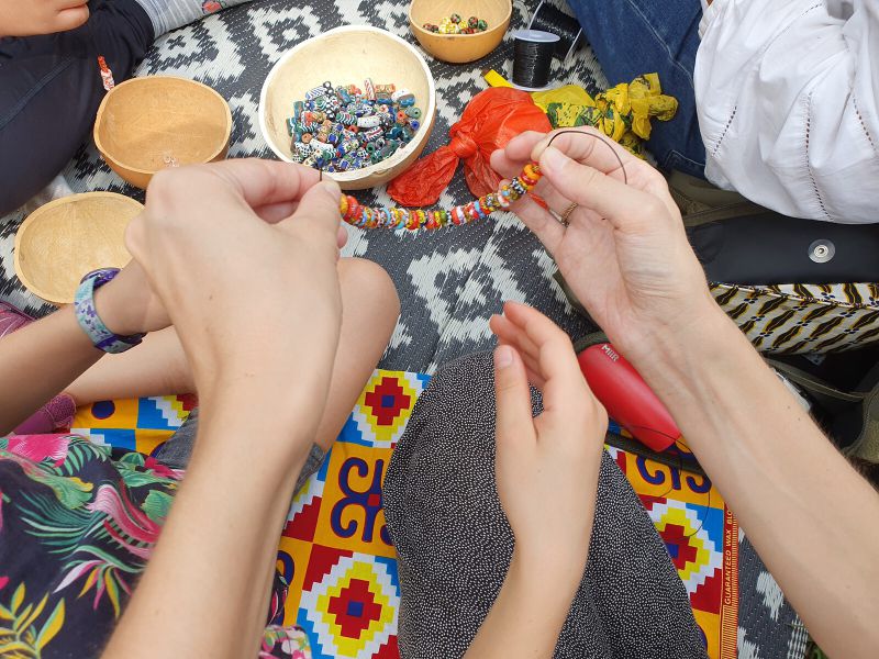 - Wir haben ganz viele Armbänder gemacht. Manche waren schwer und andere leicht zu machen. Man konnte ganz viele Farben aussuchen und die Armbänder sind ganz schön geworden.