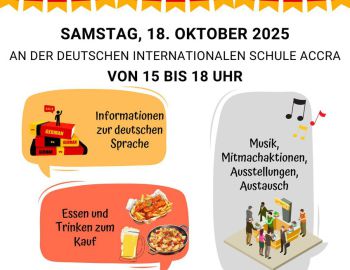 Am Samstag, den 18. Oktober 2025, lädt die German International School Accra herzlich zum Tag der deutschen Sprache ein. Ab 15 Uhr erwartet die Besucherinnen und Besucher ein abwechslungsreiches Programm mit spannenden Mitmachaktionen, inspirierende…