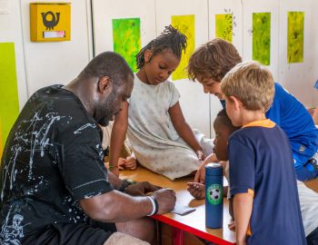 Gerald Asamaoh besucht seine Patenkinder