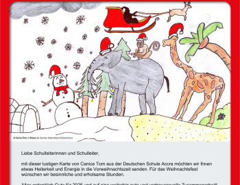Diesen guten Wünschen zu Weihnachten und dem neuen Jahr 2025 seitens der Zentralstelle für Auslandsschulwesen (ZfA) können wir uns nur vollumfänglich anschließen. Wir freuen uns auf ein gesundes Wiedersehen spätestens am ersten Schultag im neuen Jah…