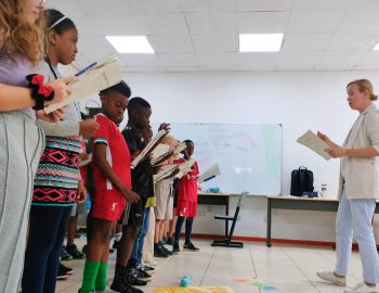 Am 23.08.2024 besuchten Prof. Dr. Winnie-Karen Giera sowie die studentische Hilfskraft Lilly Woltersdorf von der Inklusiven Deutschdidaktik die Deutsche Internationale Schule in Accra (Ghana). Der 6. und 7. Jahrgang gestaltete mit ihnen ein Theaterw…