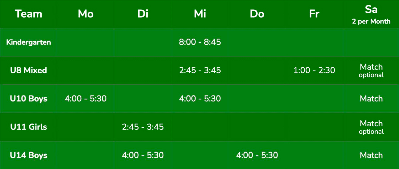 Unsere Trainingszeiten
