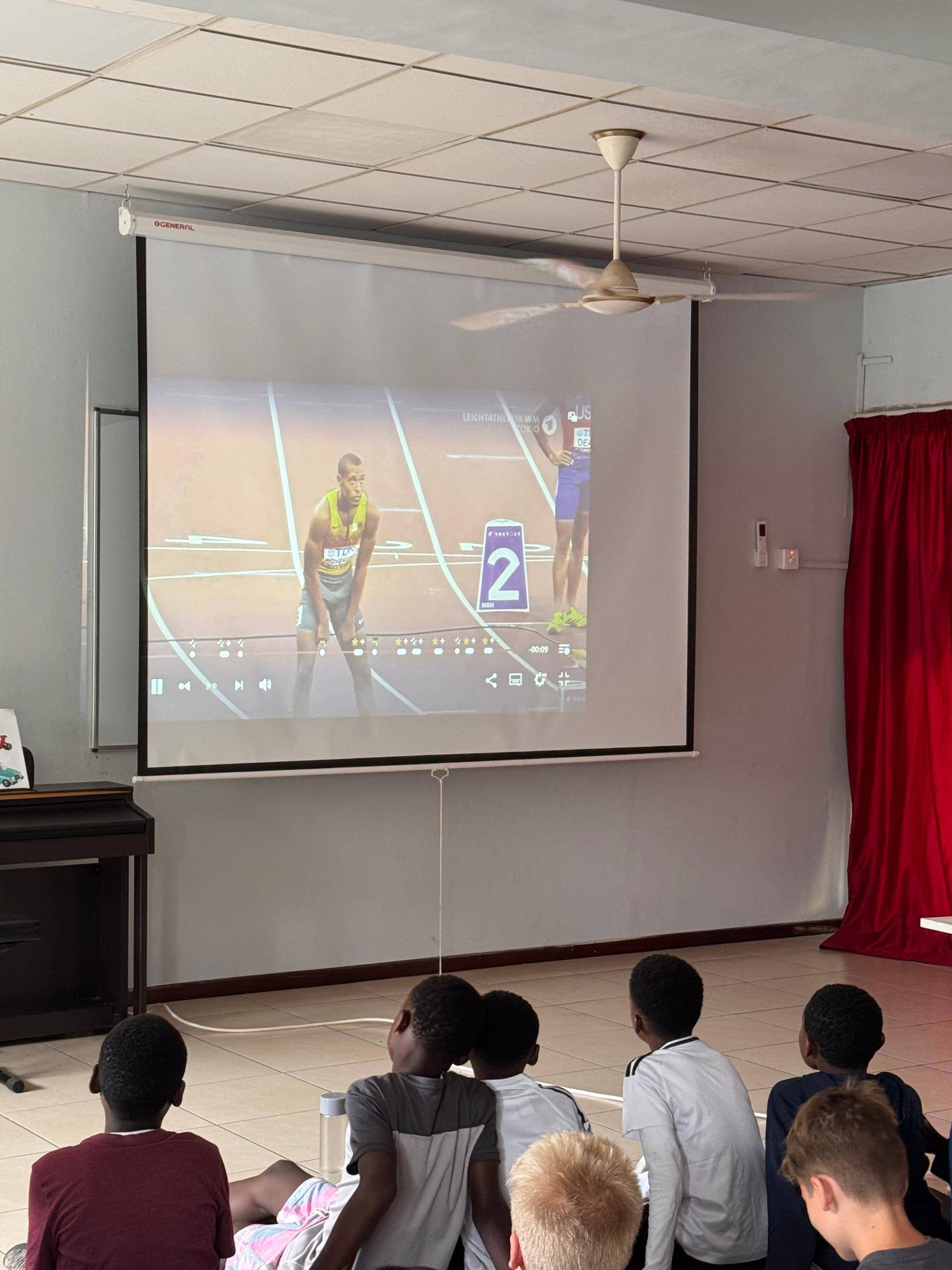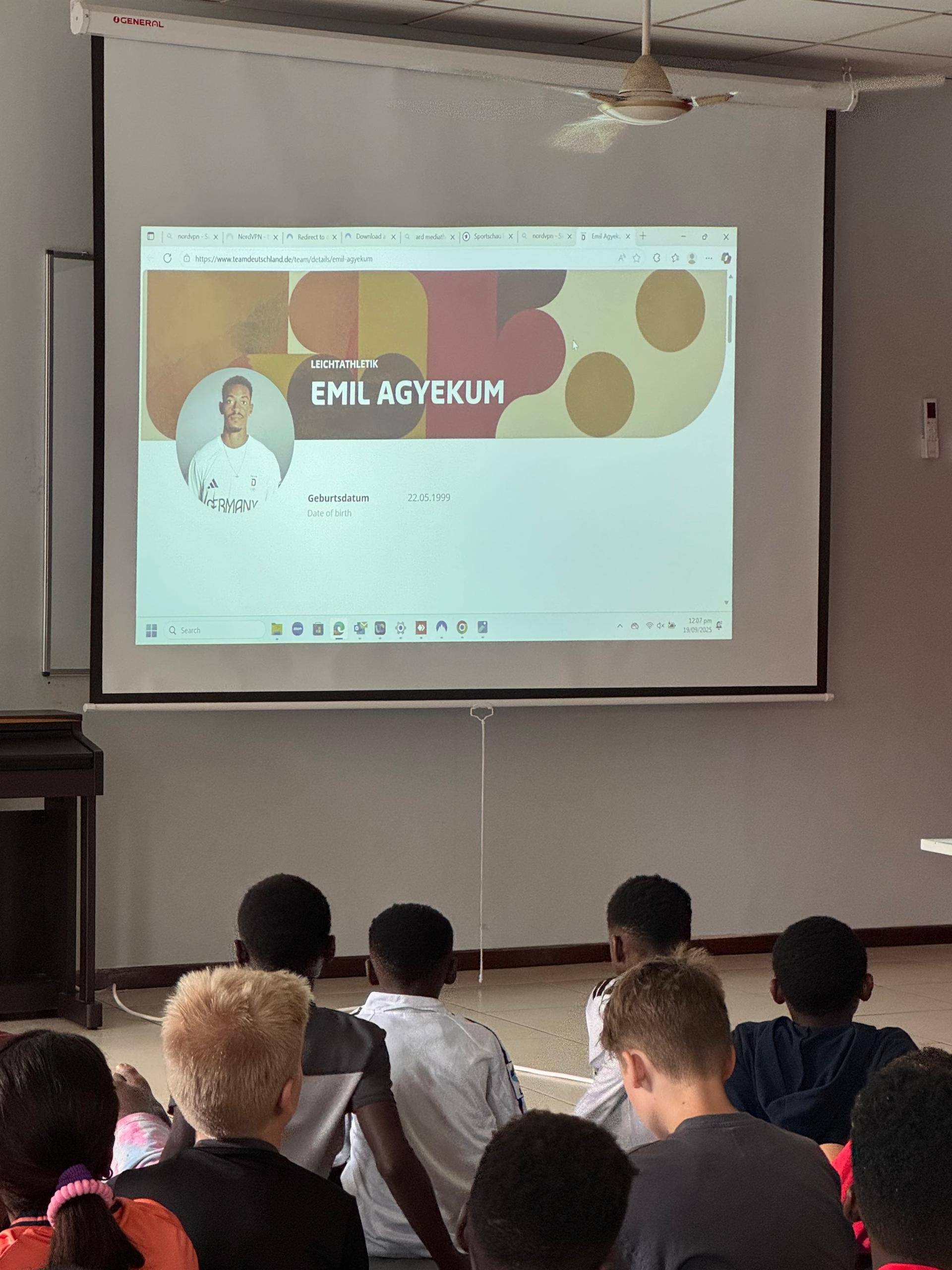 Yesterday was an exciting day at GISA as our Grades 5–8 students gathered to cheer on our former student, Emil Nana Kwame Agyekum, in the 400-meter hurdles final. With homemade signs, loud cheers, and plenty of excitement, our students turned the viewing into a true sporting event filled with team spirit and joy.