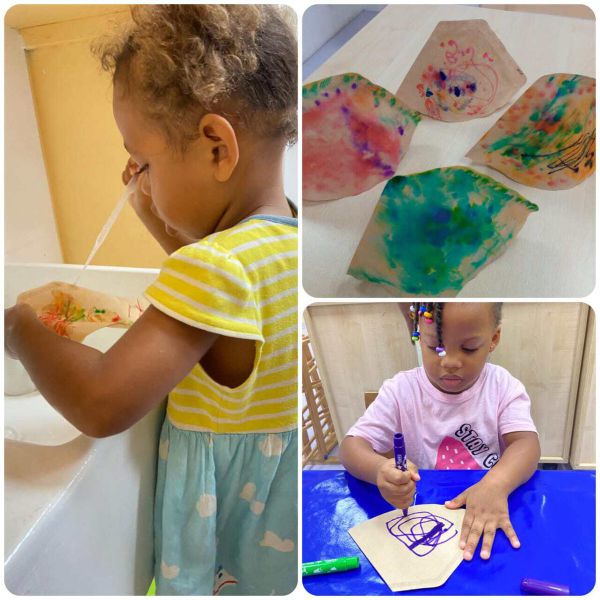 Making lanterns in the nursery! The children created beautiful, colourful lanterns with coffee filters, felt pens and water. Be surprised by the results at the St Martin's procession!