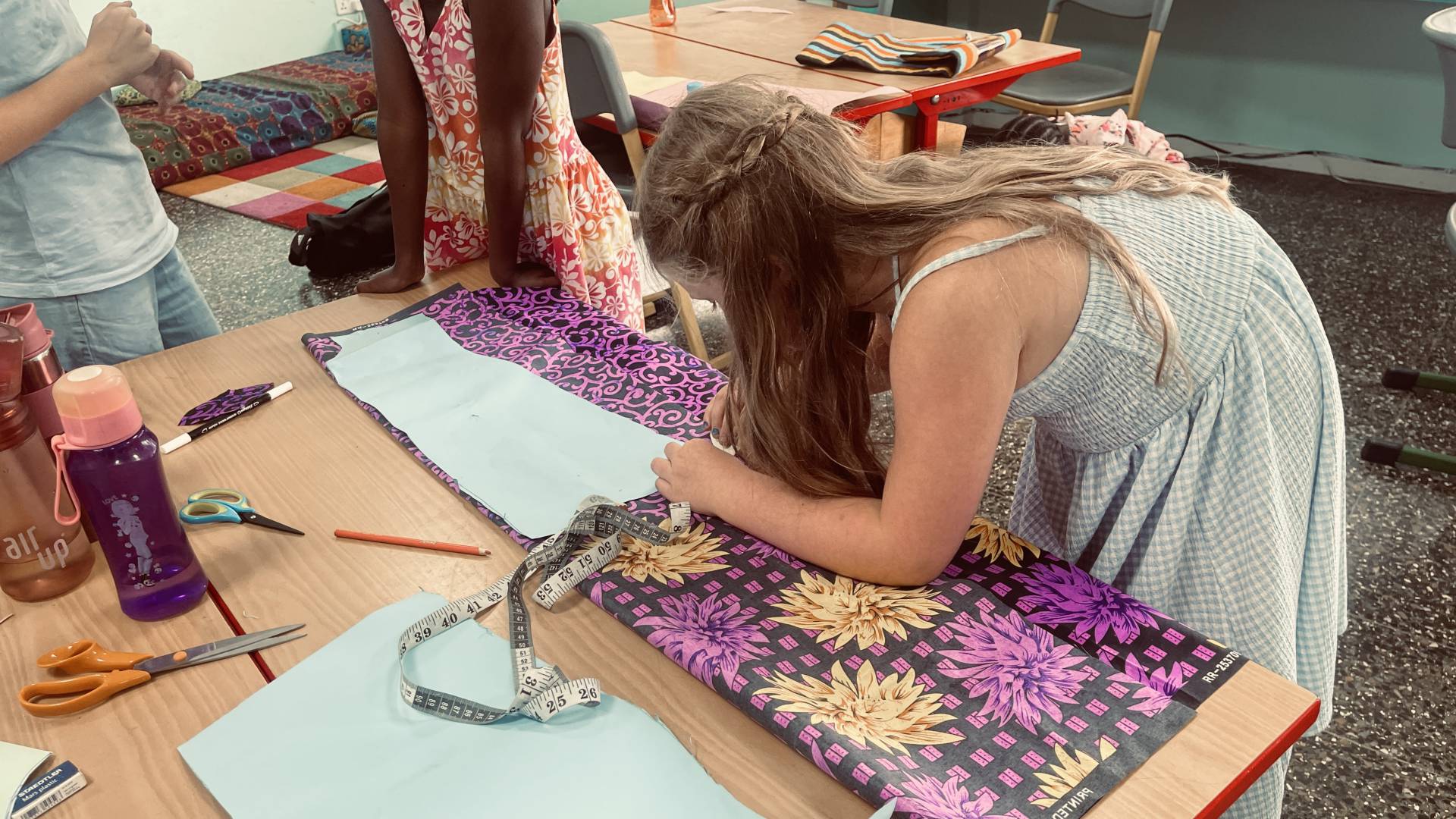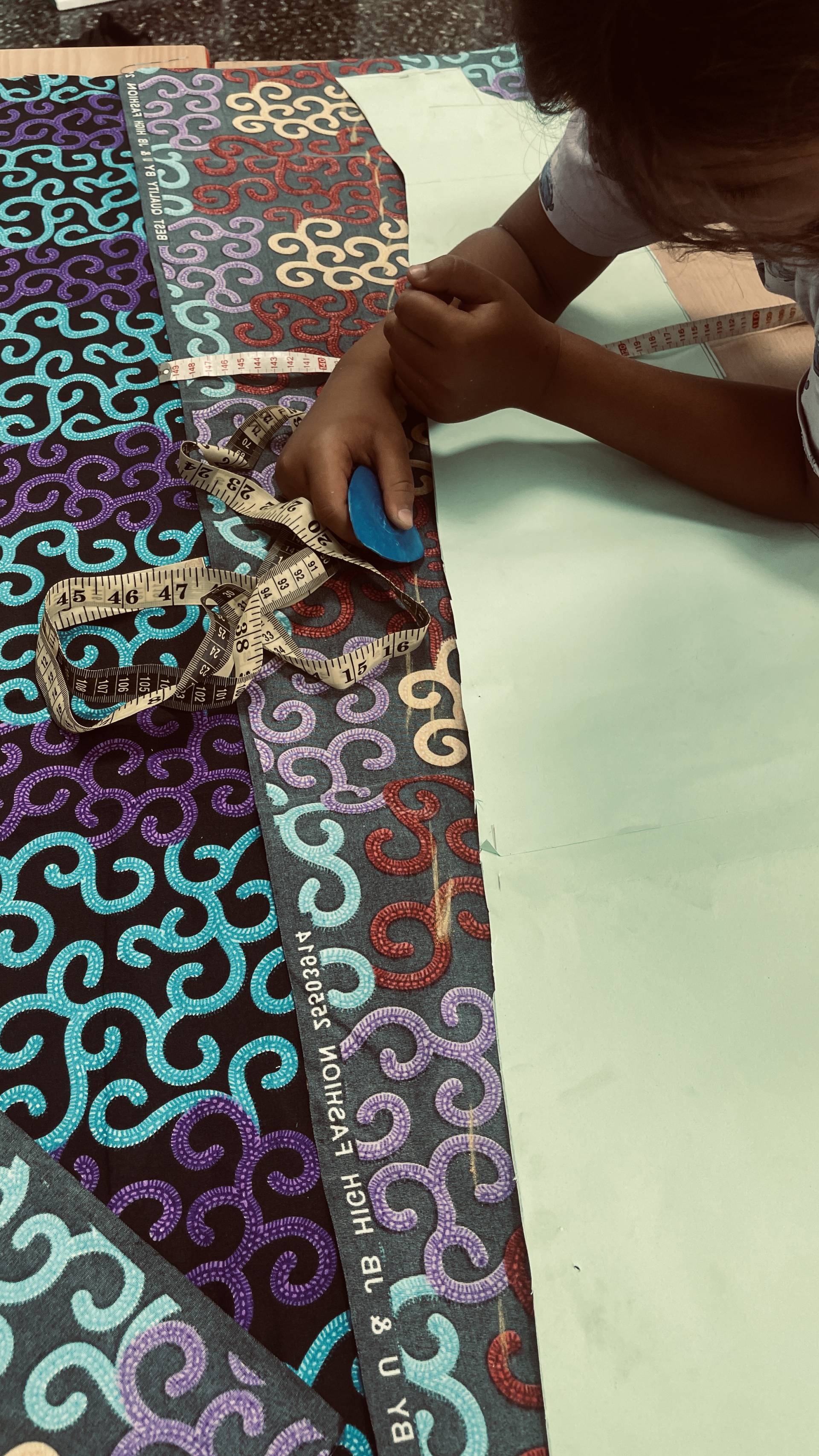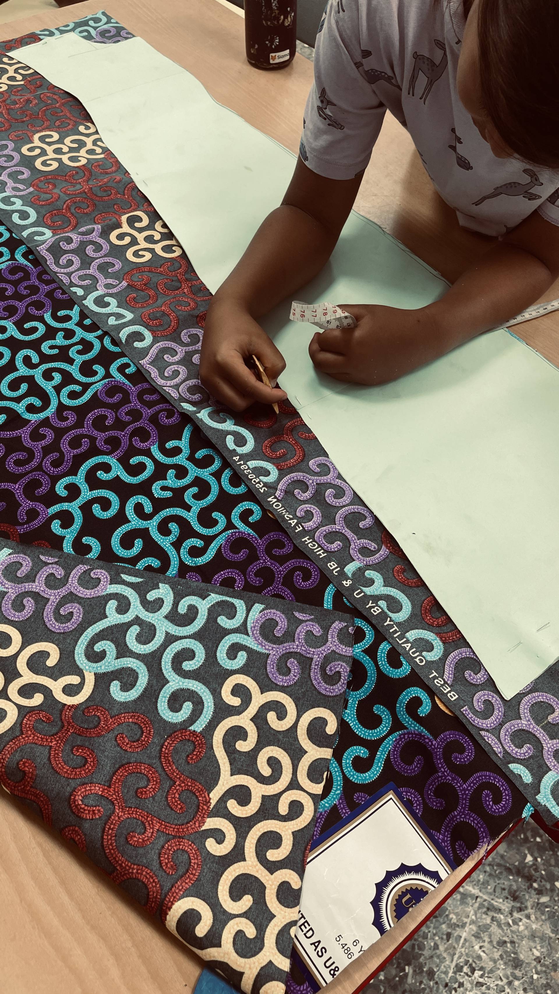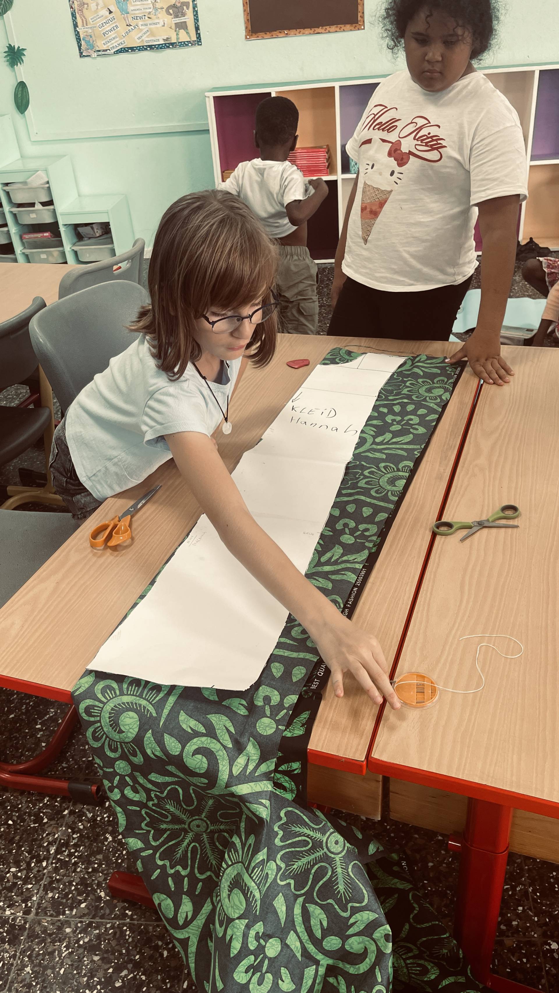 After the students had already mastered working with needle and thread surprisingly well, this week marked the next big step: transferring the patterns onto the fabrics and carefully cutting them out. It quickly became clear that a few details still needed to be adjusted – but that was exactly what made the process so exciting. Step by step, the fabric pieces began to take shape, and suddenly it was possible to see which garments they would become. The students could literally watch their designs move from paper into reality. With every cut, every correction, and every careful movement, their enthusiasm grew – as did their curiosity about what the finished models would look like.