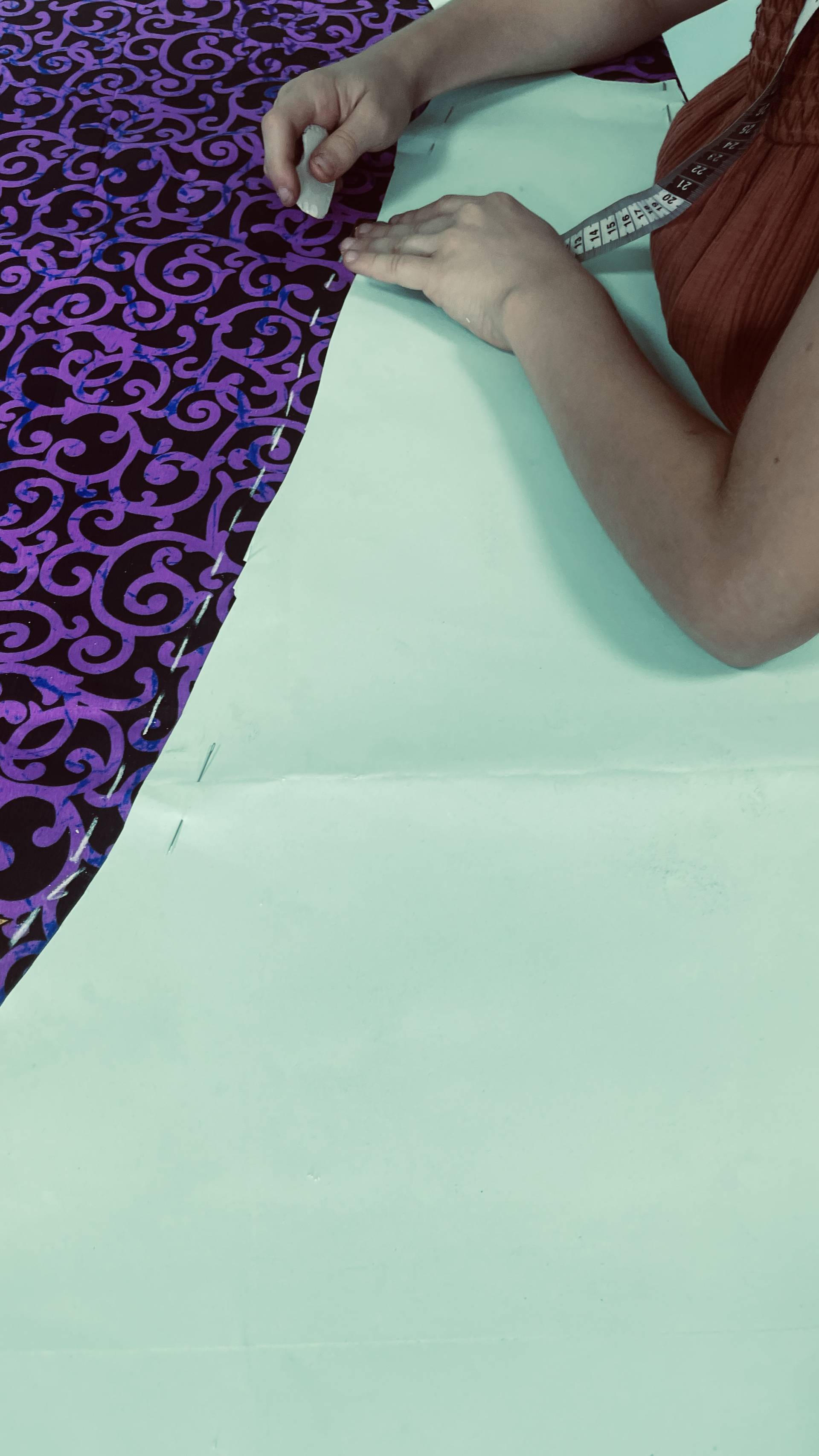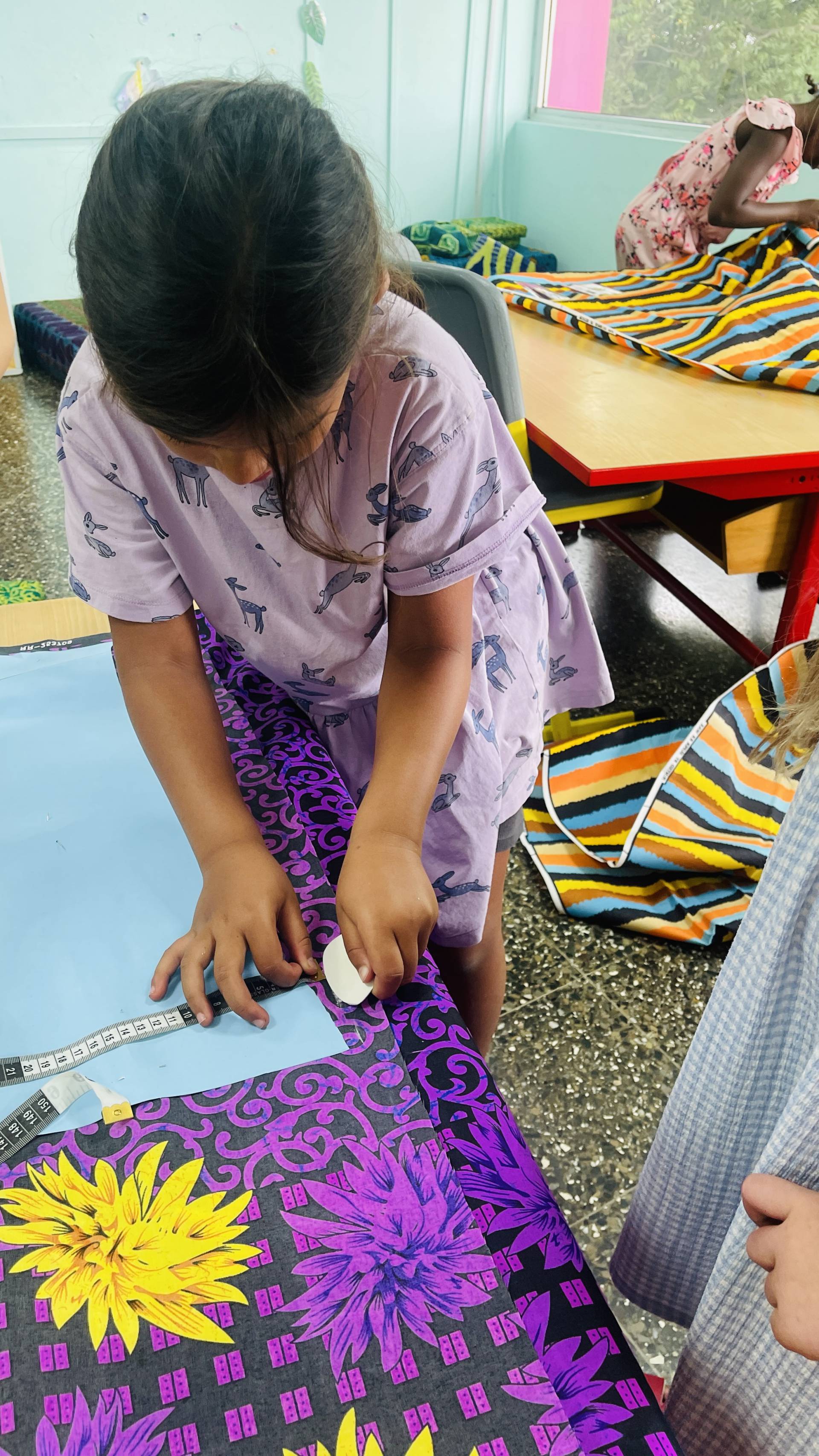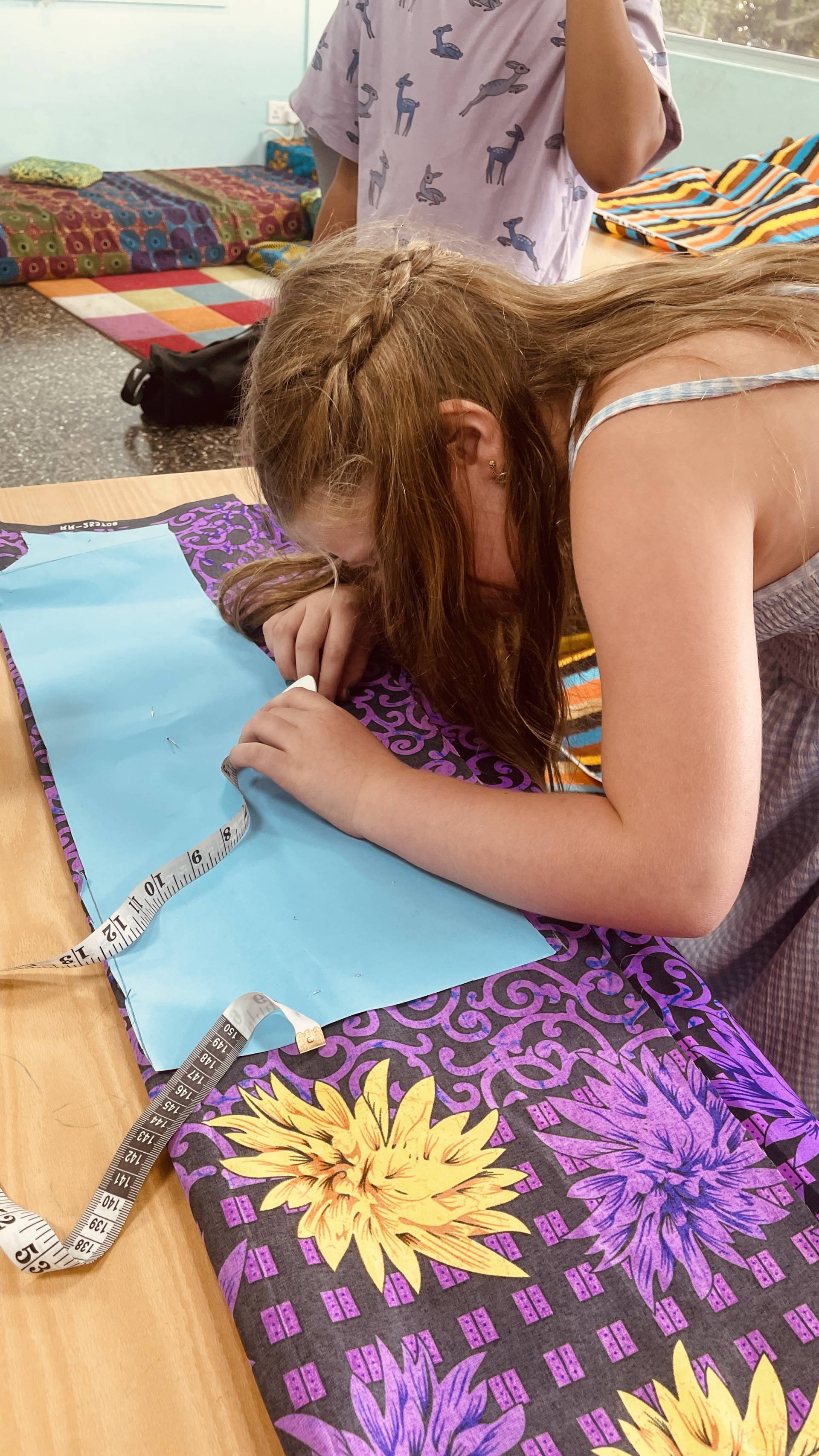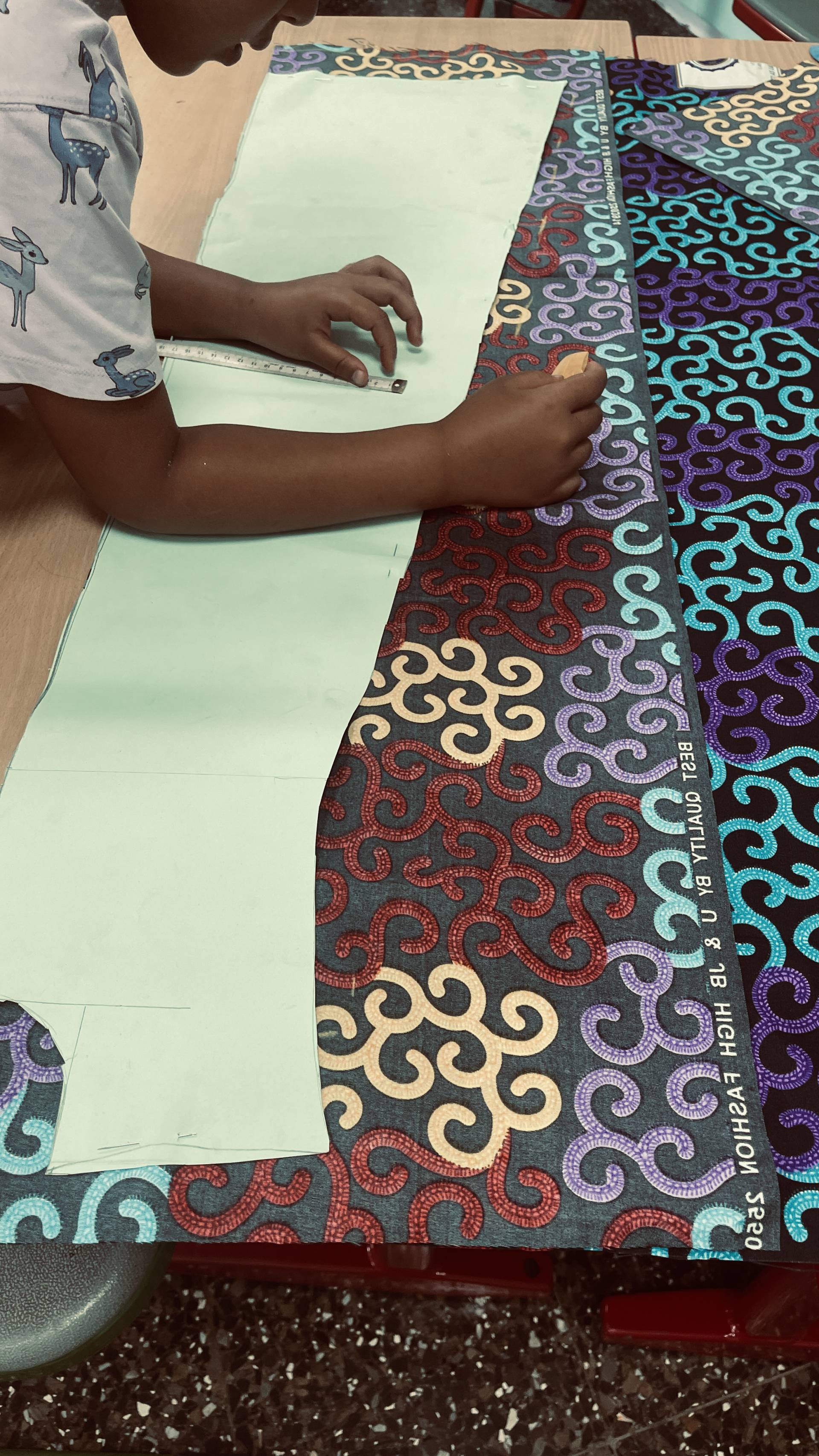 After the students had already mastered working with needle and thread surprisingly well, this week marked the next big step: transferring the patterns onto the fabrics and carefully cutting them out. It quickly became clear that a few details still needed to be adjusted – but that was exactly what made the process so exciting. Step by step, the fabric pieces began to take shape, and suddenly it was possible to see which garments they would become. The students could literally watch their designs move from paper into reality. With every cut, every correction, and every careful movement, their enthusiasm grew – as did their curiosity about what the finished models would look like.