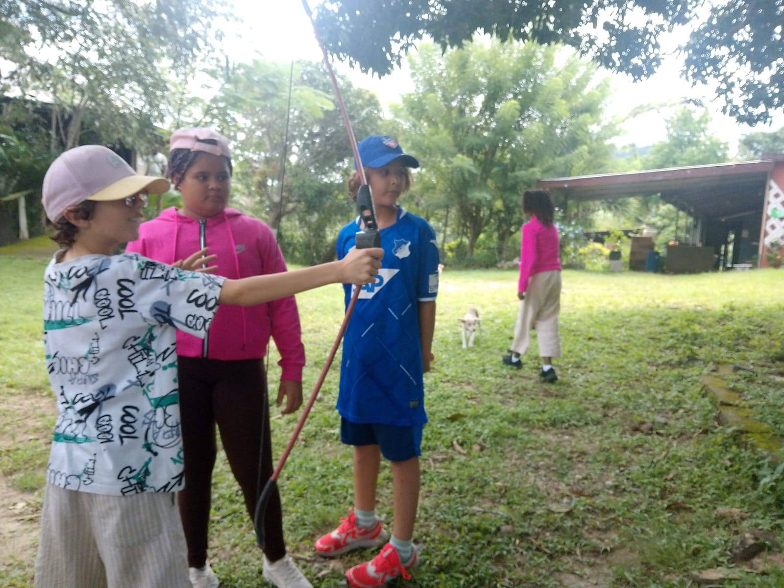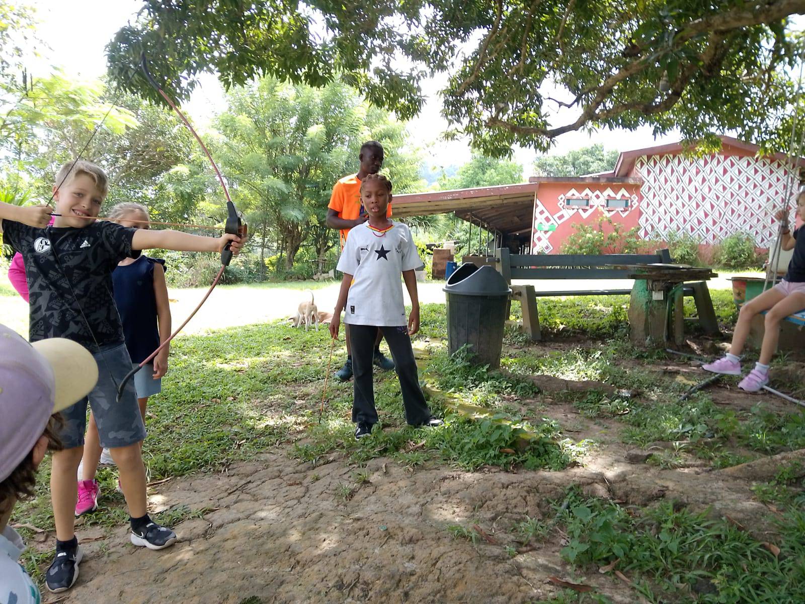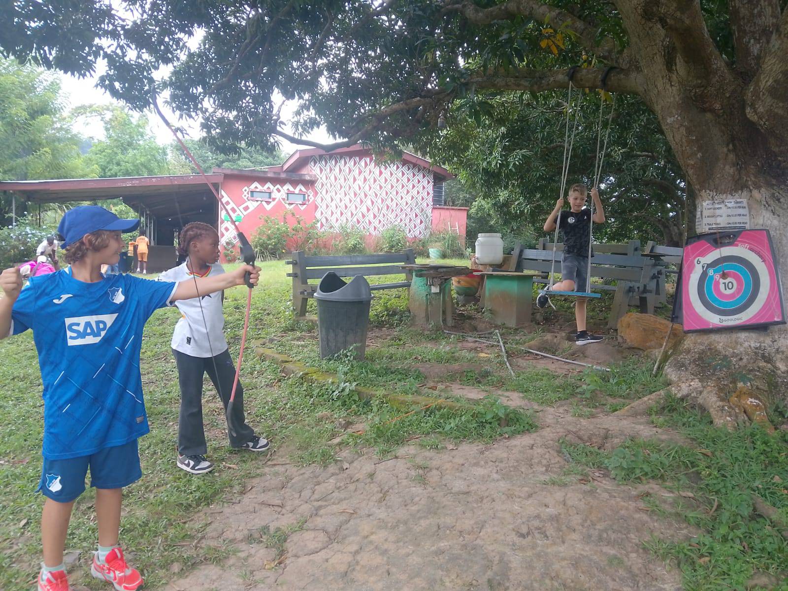 After a stop for some fun and movement with trampolining and archery, we continued toward our destination. The excitement grew with every kilometre – and finally we arrived at the Tagbo Falls Lodge!