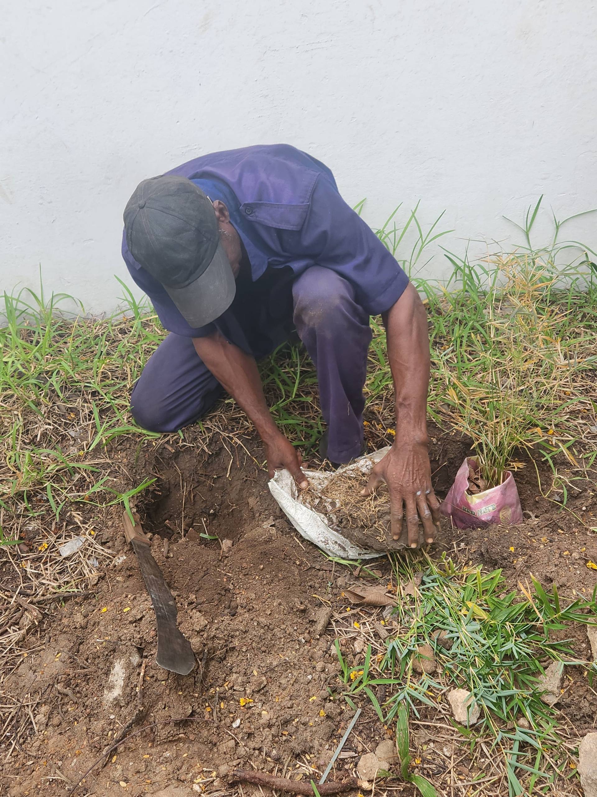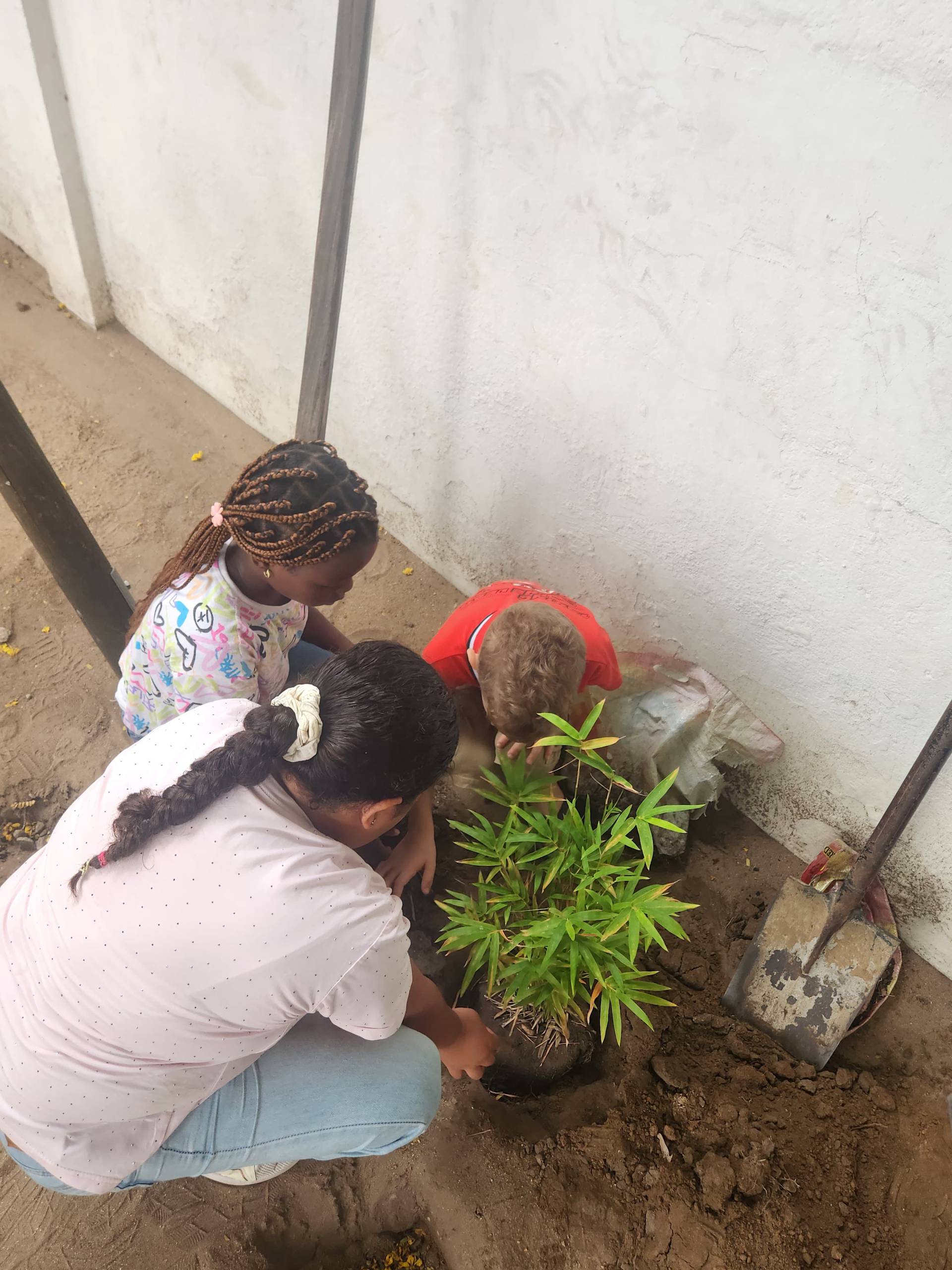 The project was initiated by parents and pedagogically supported by Ve Fredrich and Russell Adu, in close cooperation with our gardeners Dominic Adamu and Isaac Ayamga. The bamboo was planted along the inside of the school wall.
