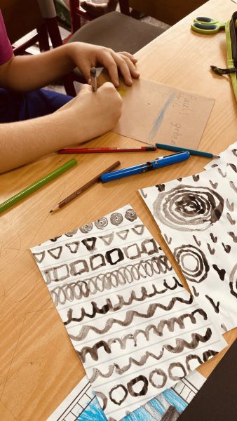 Diese Woche haben die Schüler:innen der Förderband-Gruppe „Stärken stärken“ ihre Reise in die Welt der Schriftarten mit einem besonderen Projekt abgeschlossen: einem selbstgemachten Mini-Buch. Dafür wurden die Seiten aus den zuvor gestalteten Schriftzeichenbögen ausgeschnitten, gebunden und mit einem selbst entworfenen Buchdeckel verziert. So sind kleine, persönliche Bücher entstanden, die schon von außen neugierig machen – und im Inneren viele geheimnisvolle Zeichen und Ideen bereithalten.