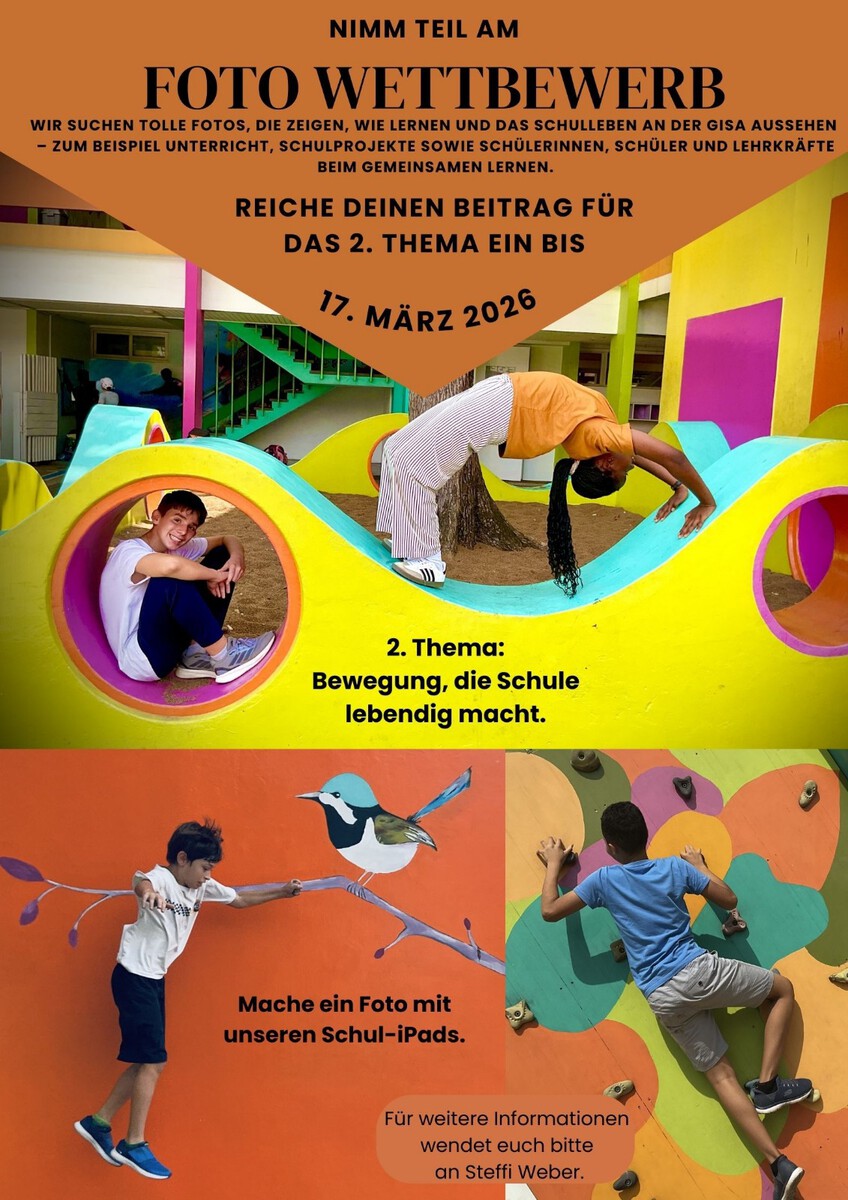 Alle Schülerinnen und Schüler sind eingeladen, mit den Schul-iPads ein Foto aufzunehmen und einzureichen. Der Kreativität sind dabei kaum Grenzen gesetzt: Entscheidend ist, dass eure Aufnahme Bewegung und Lebendigkeit an unserer Schule einfängt.