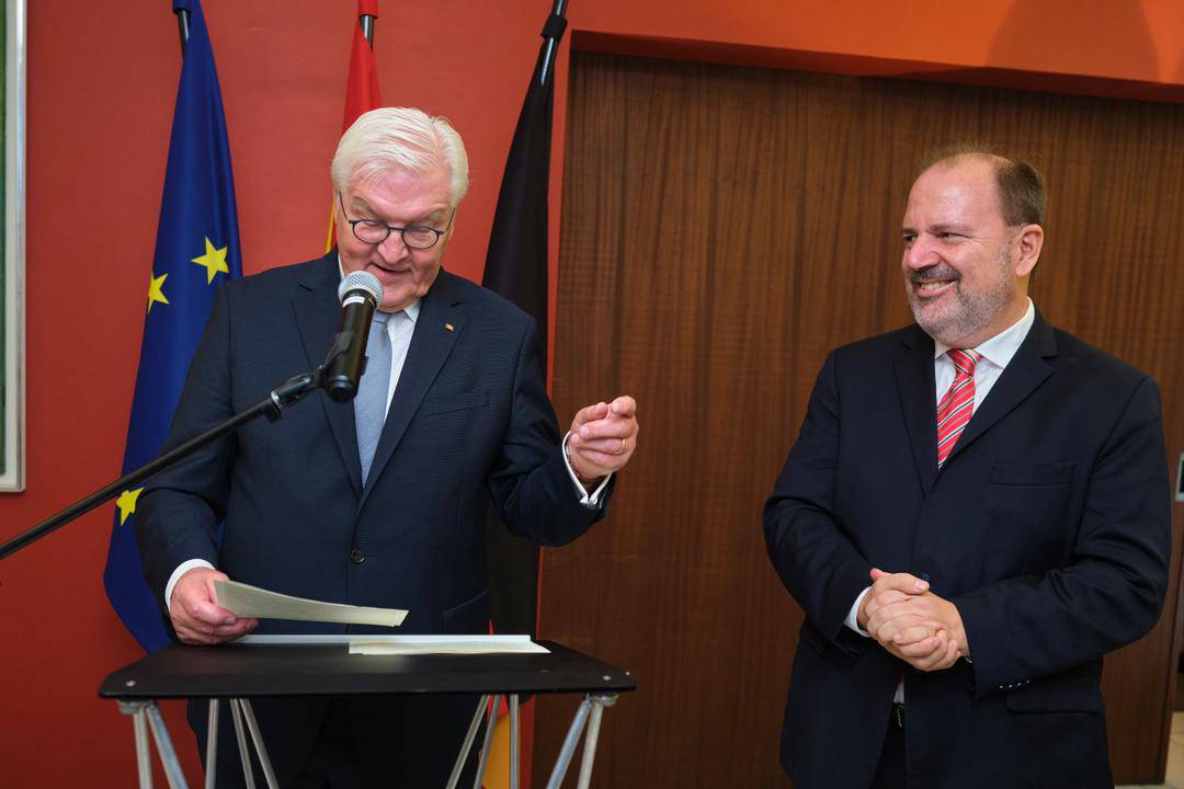 Der Staatsbesuch des deutschen Bundespräsidenten Frank-Walter Steinmeier in Ghana war auch für die Deutsche Internationale Schule Accra (GISA) ein besonderer Moment. Bei einem Empfang in der Residenz der Deutschen Botschaft konnte Schulleiter Rainer Kropp-Kurta dem Bundespräsidenten kurz von der positiven Entwicklung der Schule berichten – von neuen Kooperationen, wachsenden Schülerzahlen und dem Beitrag der GISA zu Bildung und Verständigung in Ghana.