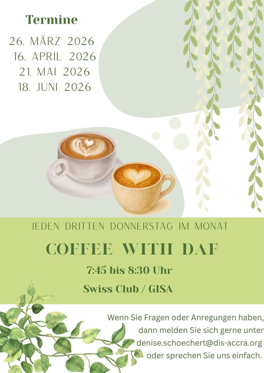 Mit unserem Format „Coffee with DaF“ laden wir Eltern und Interessierte herzlich dazu ein, regelmäßig mit uns ins Gespräch zu kommen. In entspannter Atmosphäre bei einer Tasse Kaffee möchten wir Einblicke in unseren Deutsch-als-Fremdsprache-Unterricht (DaF) geben, Fragen beantworten und gemeinsam Ideen entwickeln, wie wir unsere Schülerinnen und Schüler bestmöglich auf ihrem Sprachlernweg begleiten können.