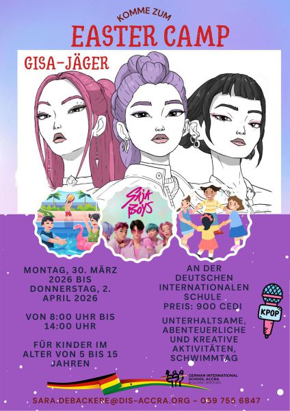 Die Deutsche Internationale Schule Accra lädt Kinder und Jugendliche zu einem abwechslungsreichen Easter Camp ein. Vom 30. März bis zum 2. April 2026 erwartet die Teilnehmenden täglich von 8:00 bis 14:00 Uhr ein buntes Programm voller Bewegung, Kreativität und gemeinsamer Erlebnisse.