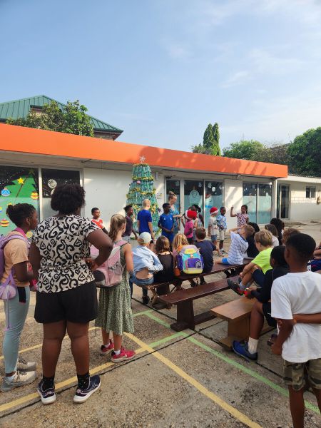 Am Montag starteten wir mit liebevoll gestalteten Weihnachts-Mandalas aus dem Projektunterricht, die die Schülerinnen und Schüler farbenfroh ausmalen konnten. Weiter ging es mit einer fröhlichen Pausen-Party auf dem Schulhof, warmem Kakao und kreativen Bastelaktionen rund um die Weihnachtsdekoration.