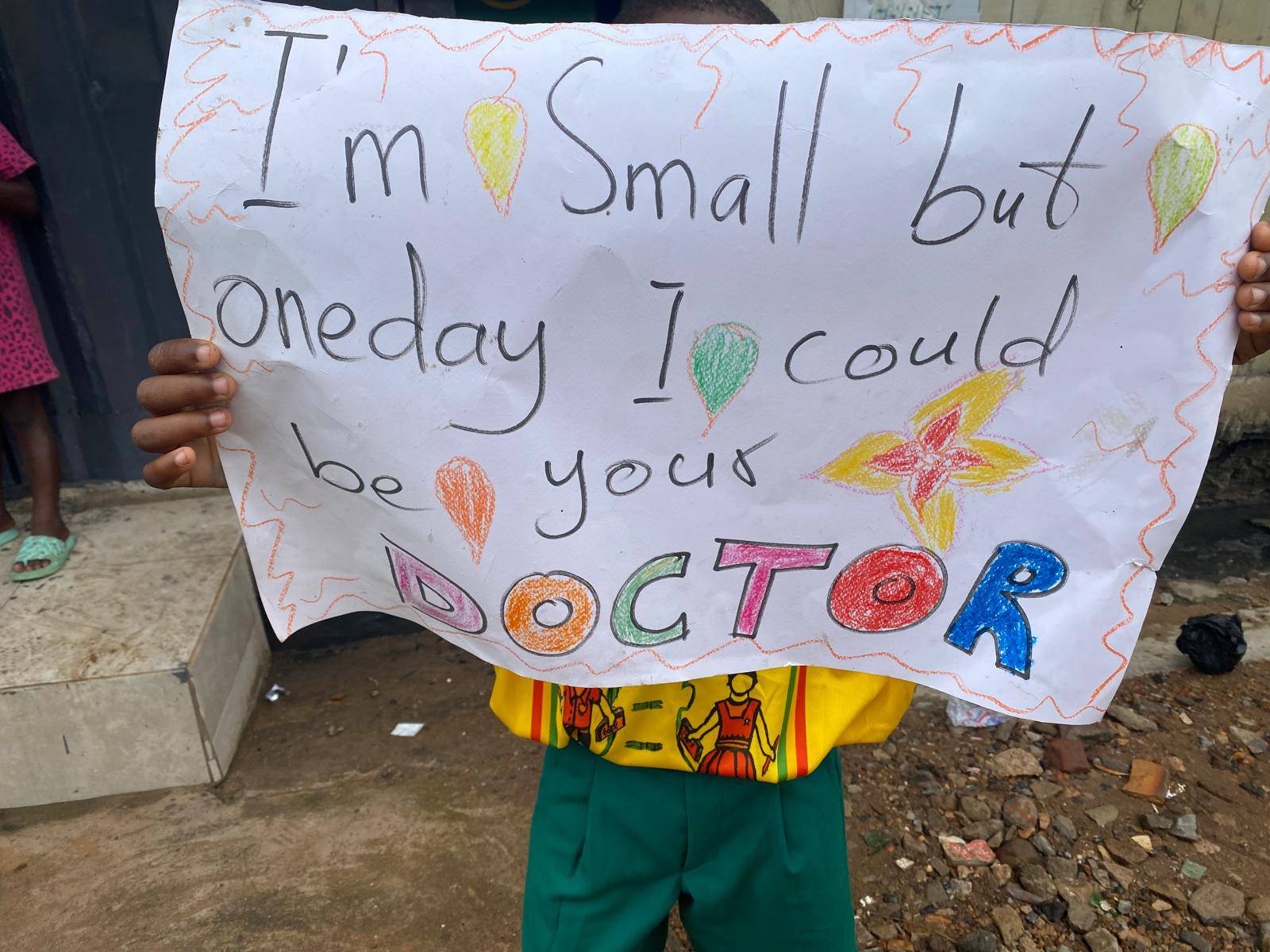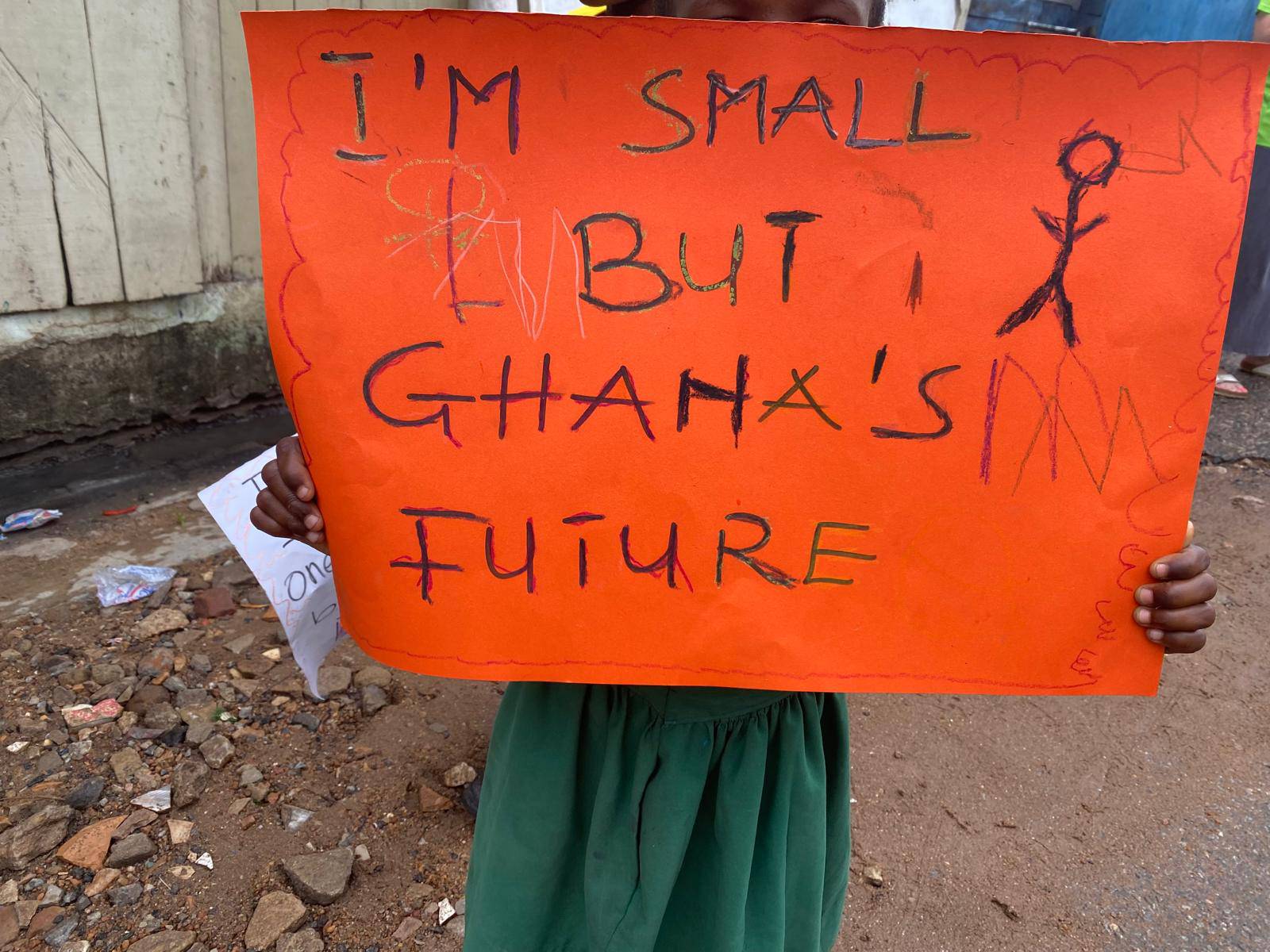 Nach einer bewegenden Schweigeminute und einem Gebet für Kinder, denen es nicht gut geht, setzte sich der farbenfrohe Zug in Bewegung: Rund 200 Kinder und Erwachsene marschierten etwa 90 Minuten durch Jamestown bis zum Makola Market – begleitet von zwei Musikkapellen, Lautsprecherfahrzeugen und beeindruckenden Plakaten mit ergreifenden Slogans.