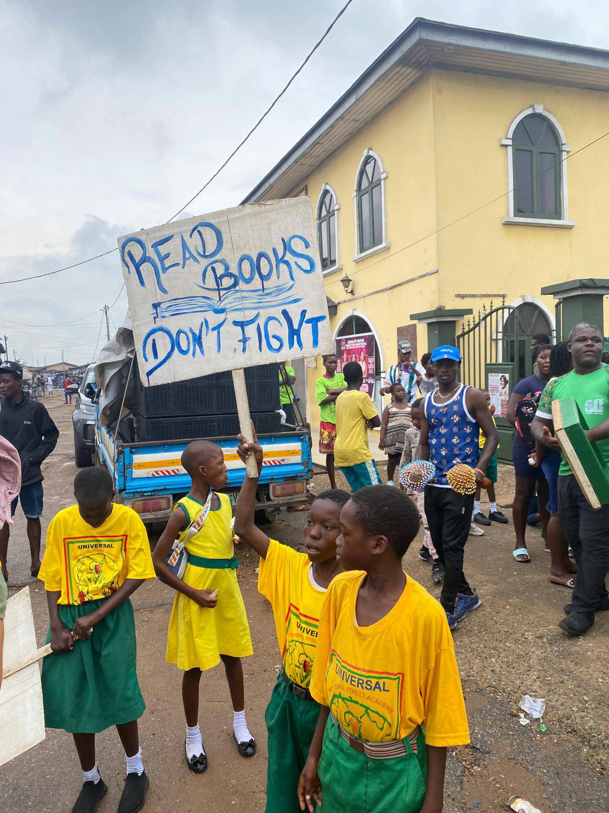 Marsch für Kinderrechte – GISA gemeinsam mit der Universal Wonderful Street Academy 🇬🇭🤝🇩🇪